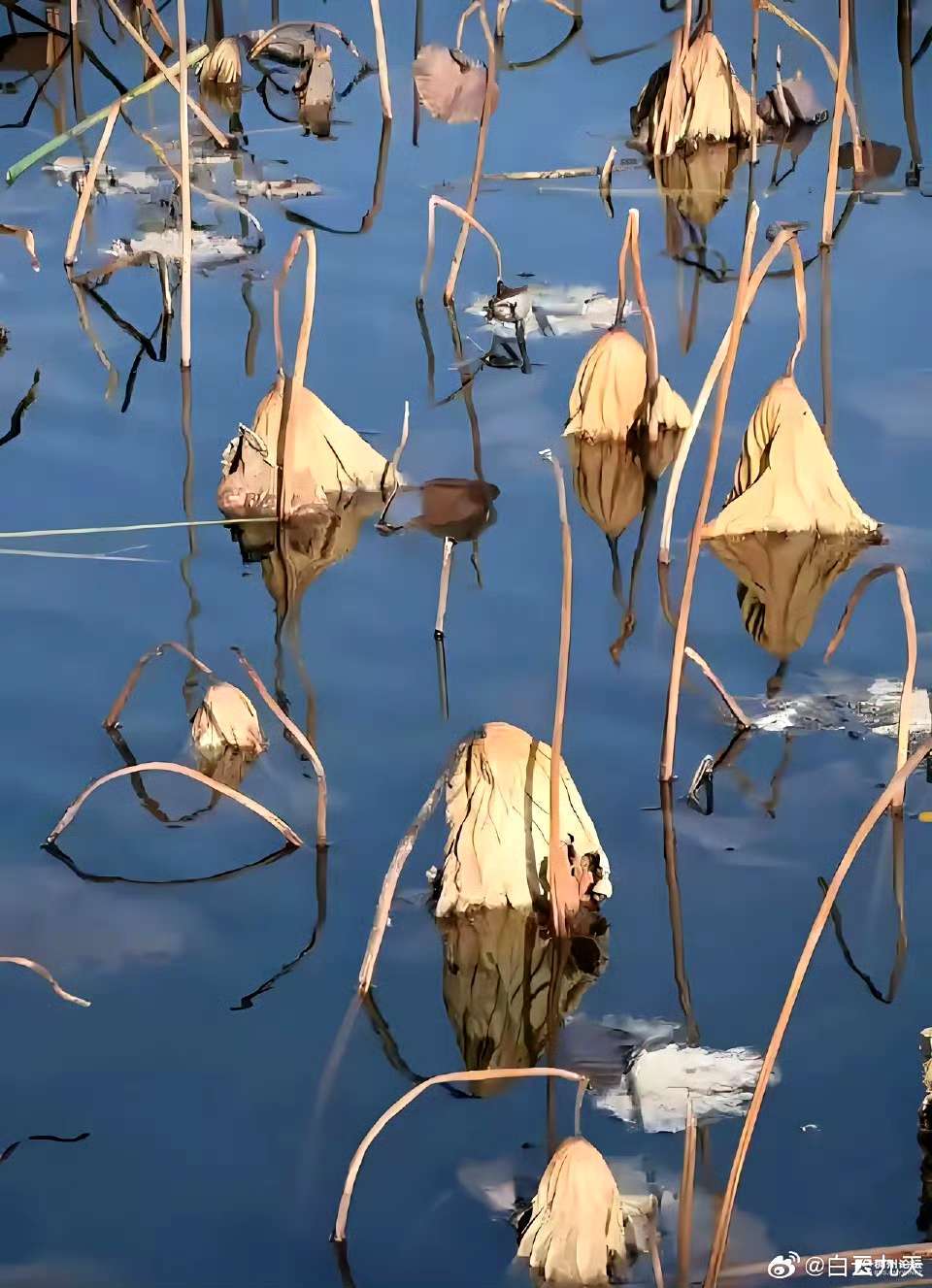 其实,美没有千篇一律,美的样子更不止一种,残荷的美正让人们懂得欣赏那种“不太完美”里的顽强与倔强。(白云九天)