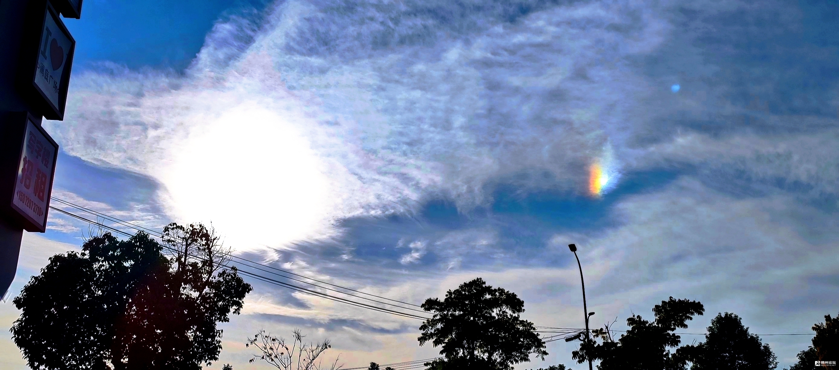 今天早上八时许,在义乌“城北路”紫金小区段,看见了“七彩祥云”。