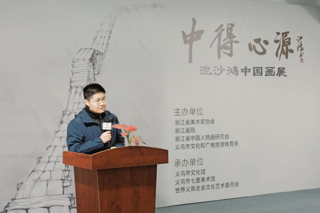 开幕式现场议程生动而丰富。义乌市文化和广电旅游体育局党委书记、局长赵一阳致欢迎辞,代表义乌市文化和广电旅游体育局向池沙鸿先生致以崇高的敬意,表达了其为当代杰出人物画家,作品兼具传统底蕴与时代风貌。也让现场观众对展览的文化意义有了更深刻的理解。