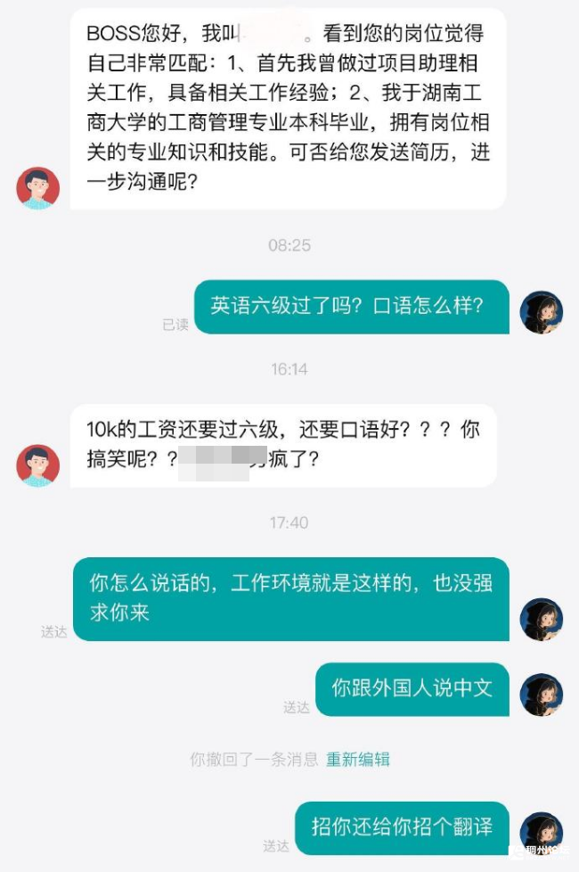 我们这岗位要对接外国人,总不能跟外国人说中文吧?合着在他眼里,10k工资就不配要求任何技能?连基础的语言能力都成了“过分要求”?