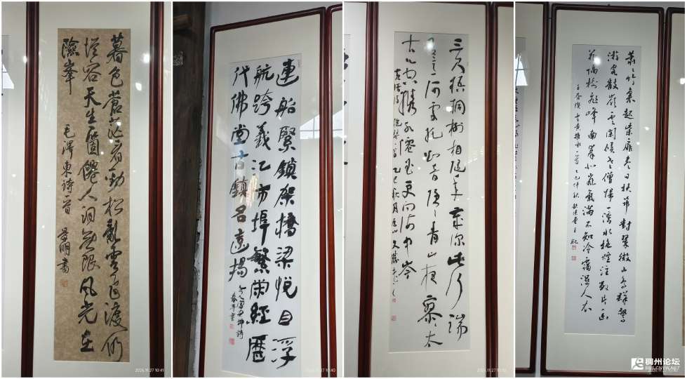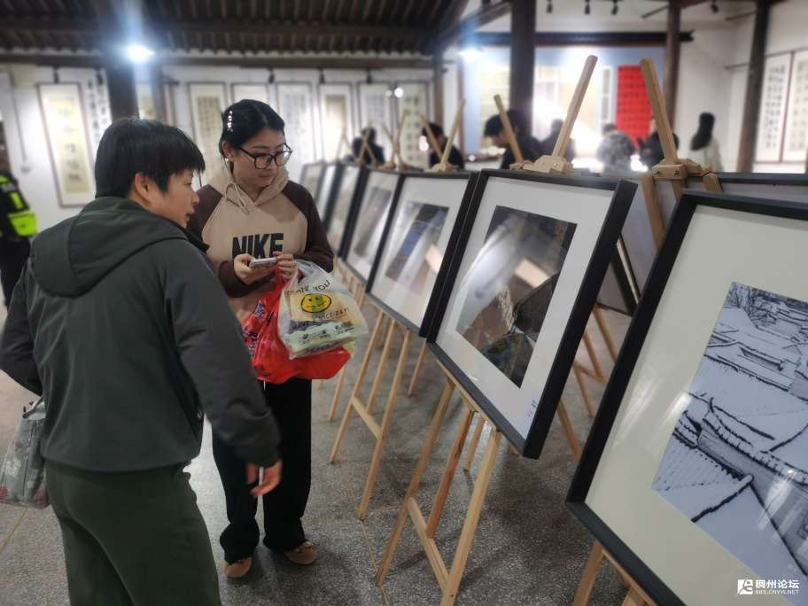 青石板路延伸的佛堂老街上,墨香与镜头光影交织,义乌江的风穿越千年,轻拂过新华剧院墙上一幅幅刚刚展出的书画摄影作品。2025年11月27日,农历十月初八,临近佛堂盛大的“十月十”民俗文化节,佛堂文联书法社、摄影社联合举办的“佛堂古镇十月十书法摄影展”在百年历史的新华剧院正式启幕。