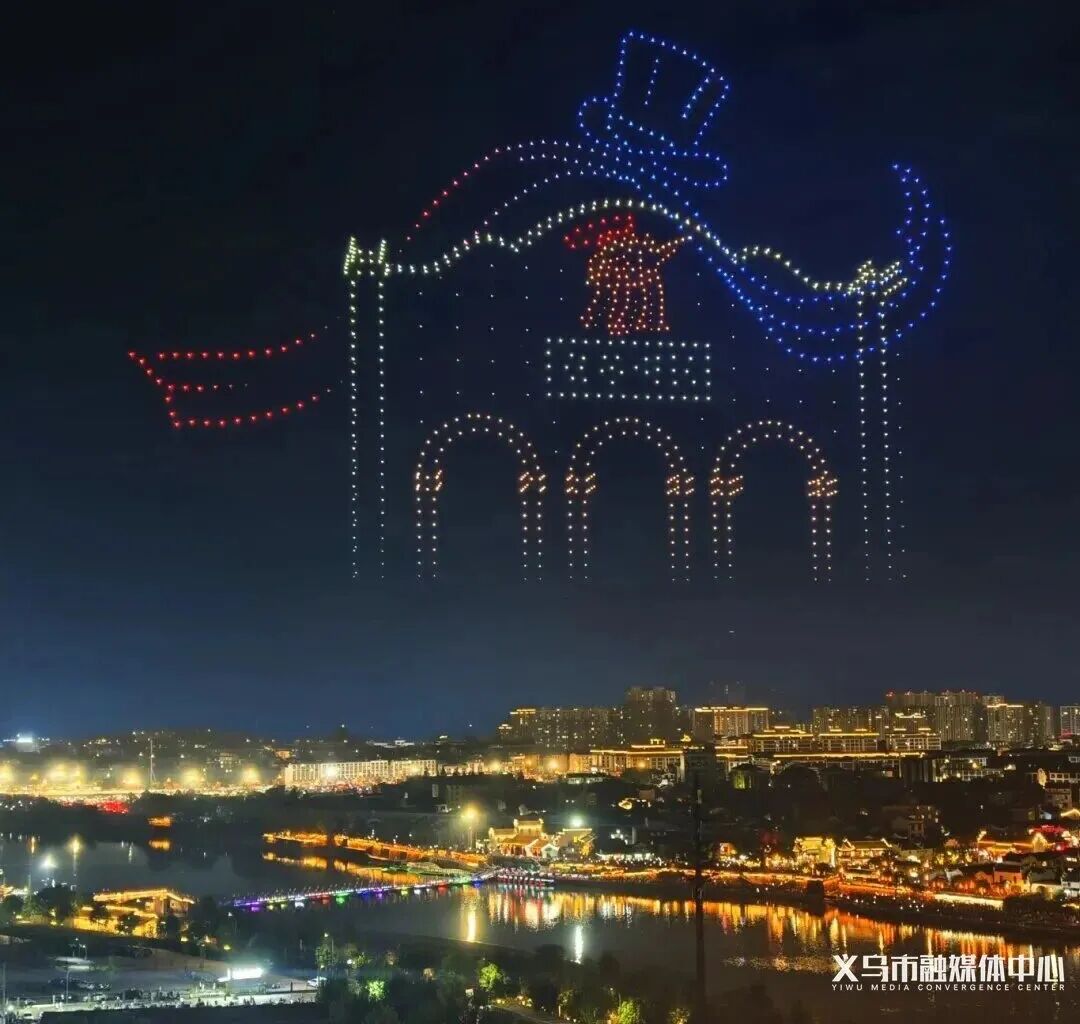 夜幕降临,无人机更化身夜空中的艺术画笔。佛堂古镇中秋之夜,千架无人机编队演绎的视觉盛宴,累计吸引游客超22万人次;全球数贸中心开业时,2600架无人机腾空而起,向世界宣告了义乌从传统贸易向数字贸易的跨越。