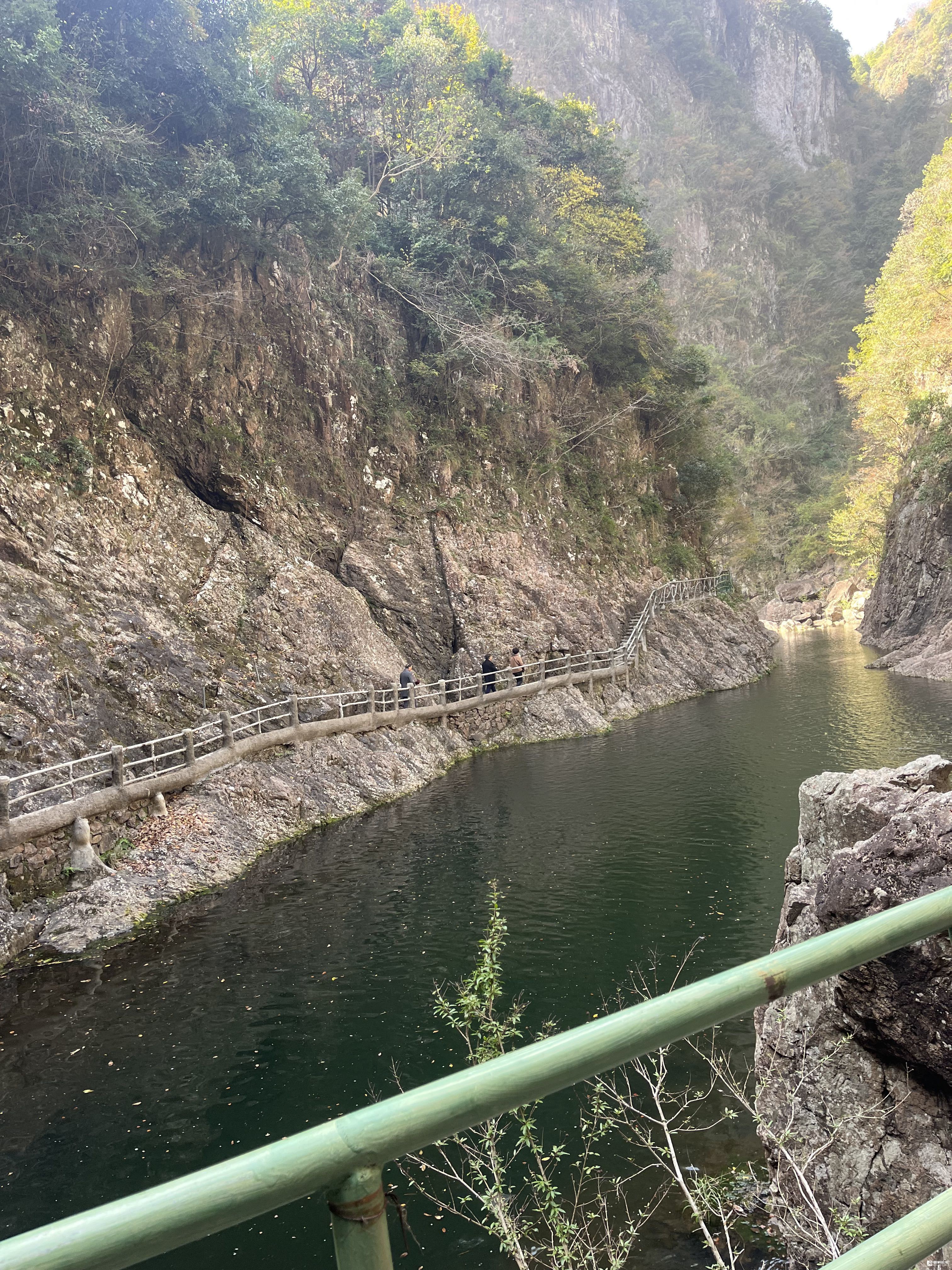 2025年11月25日上午,我们一行15位同年同月同日进入同单位的同事,组团来到了盘安舞龙峡观光旅游。舞龙峡今年政策向义乌人倾斜,因此我们进入景区的门票全给免了。同伴们高高兴兴地走进了景区,他们攀爬上了小高坡,脚下的夹溪清澈见底,流水潺潺,溪中有鱼儿在欢跳,岸边的黑天鹅拍打着翅膀,湖中游船在微风中荡漾,格外的引人注目。这些景观无须添饰任何色彩,就是一幅精美自然的山水画卷,这就是造物主赐予我们的福缘。举目间看到的便是群峰竞秀,山峦起伏的壮美风光,空气清新,赏心悦目,久违了的山野风光让同伴们欣喜若狂。