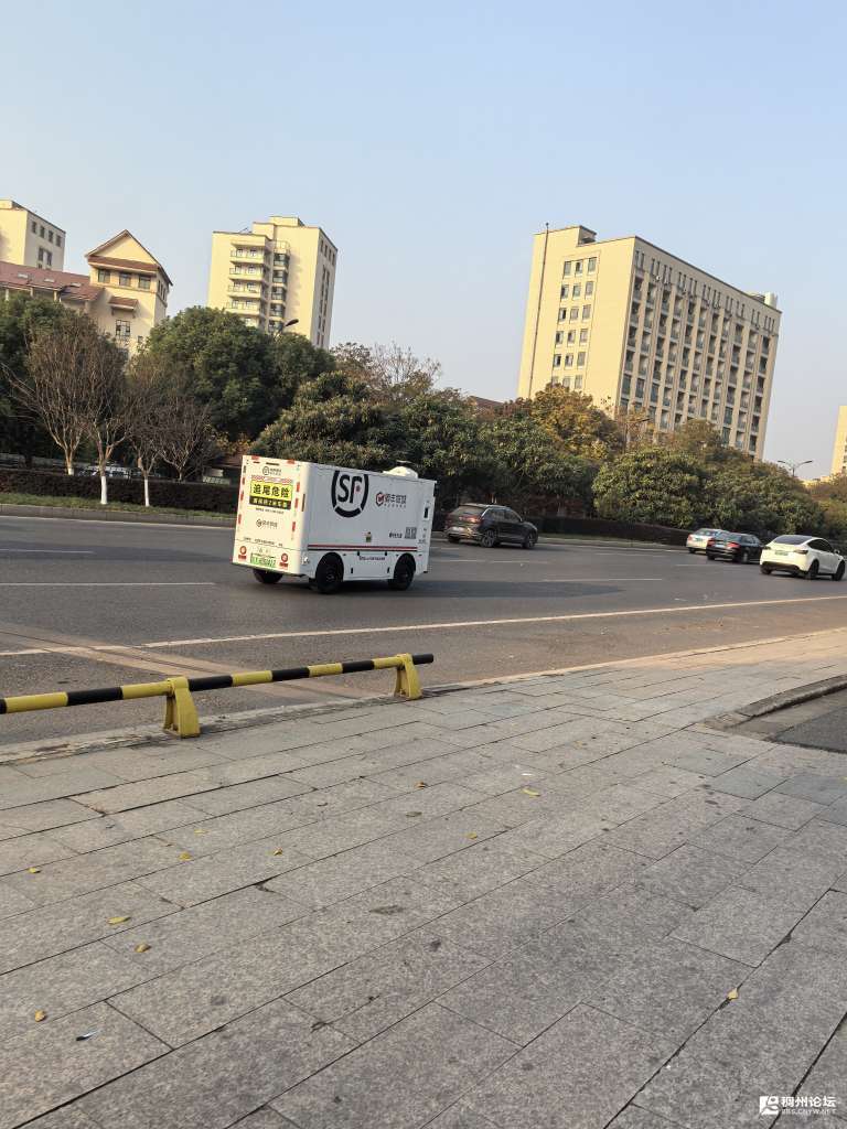 早上上班路上居然看到传说中的无人快递车了,还以为就大城市才有的呢,真遵守交规啊,远远走着对老头老太就开的很慢