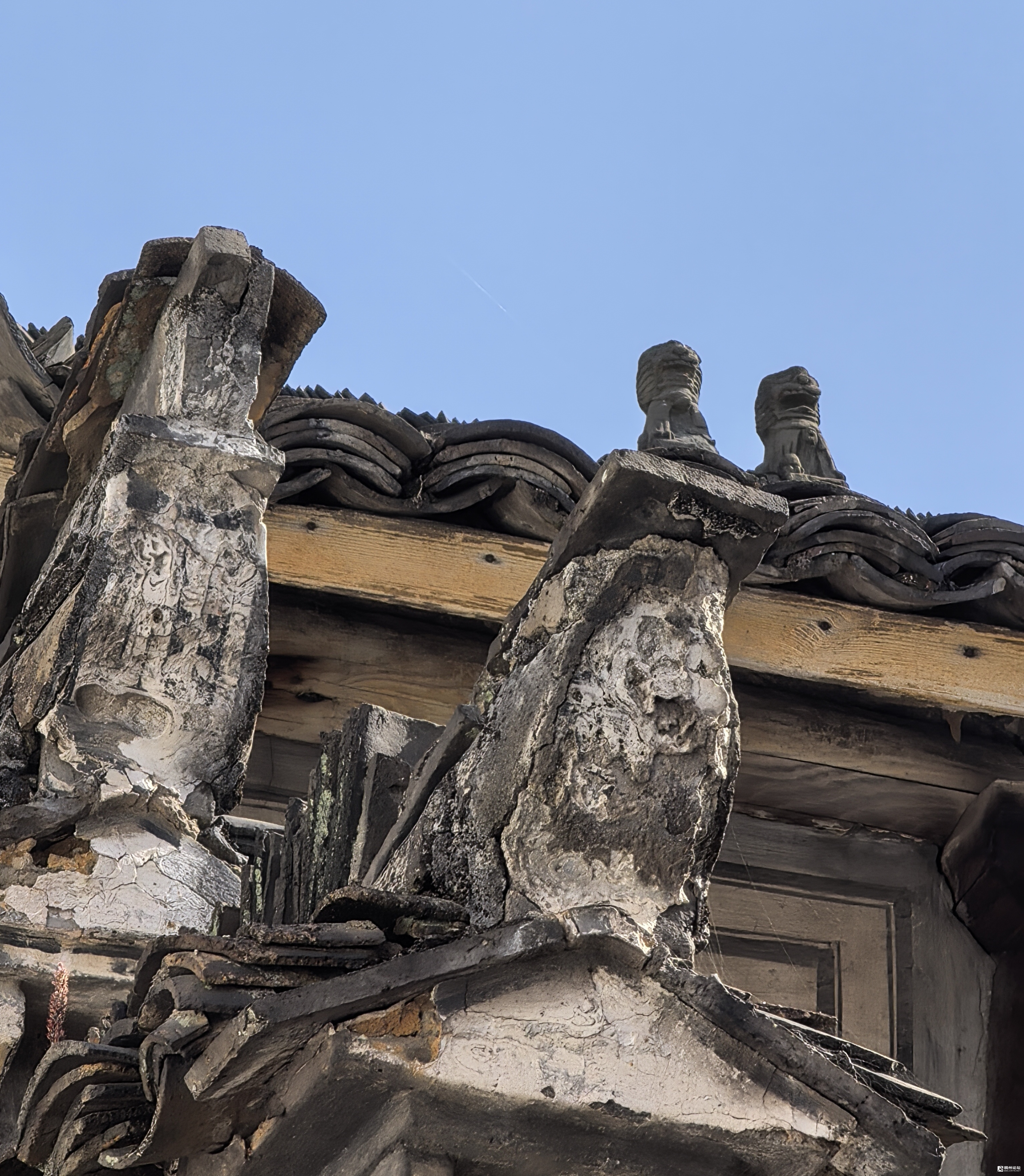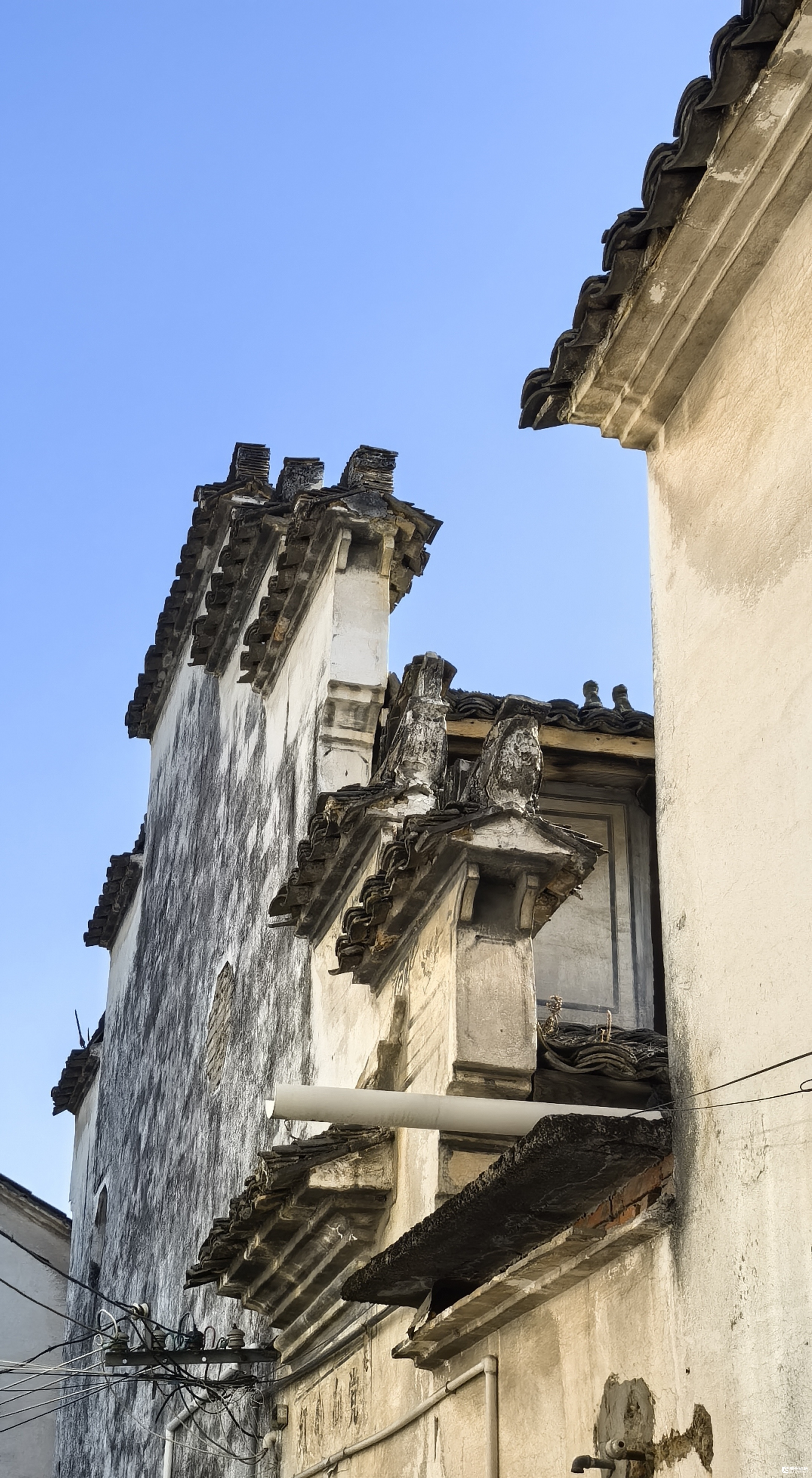 以前农家建房, 房屋的马头和屋脊背等的建造方式是多样化的。有人说以徽派式样为主流。那这幢房屋的屋脊上立有二个石雕,代表什么派呢?