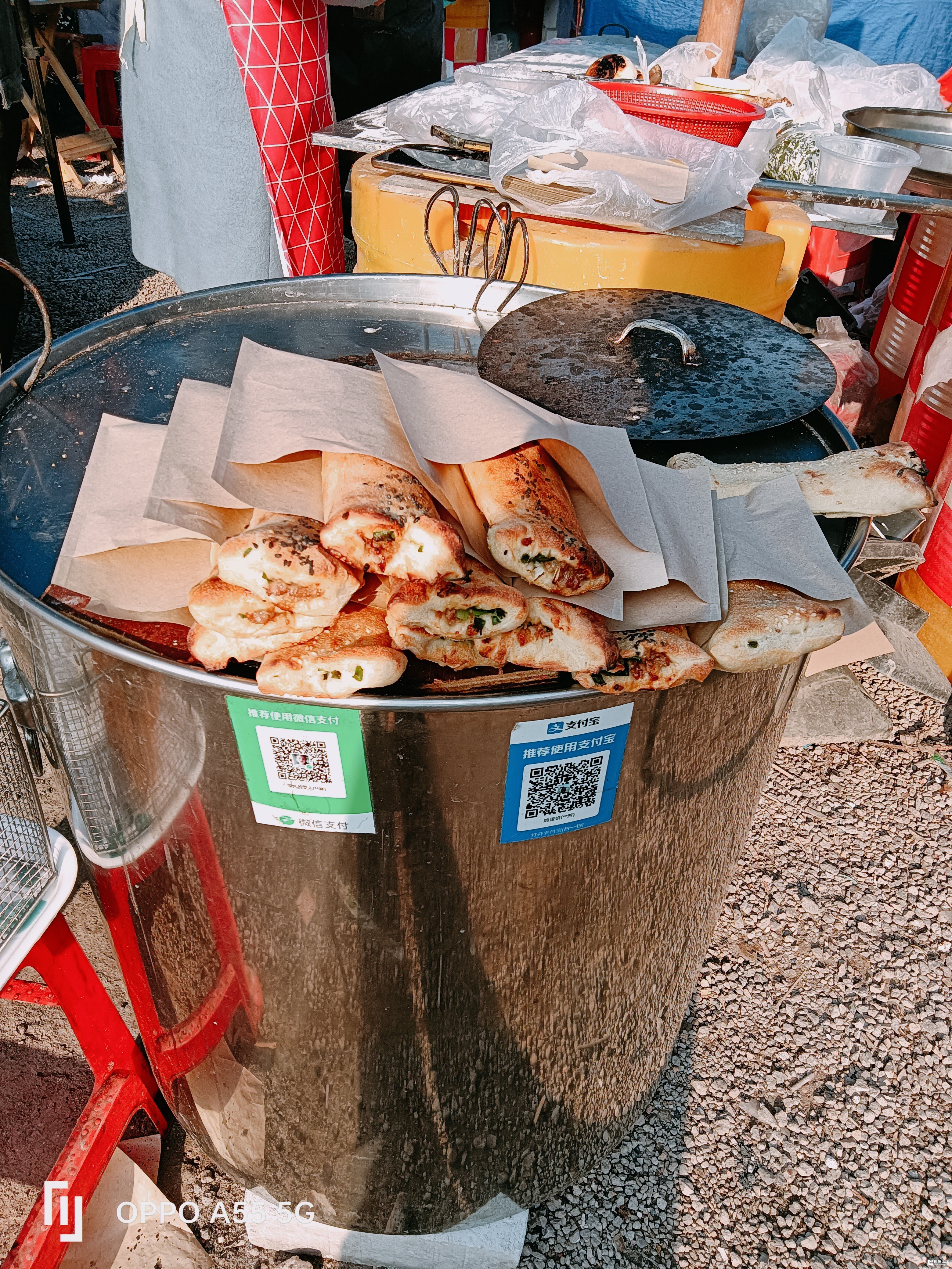 传统早餐,烧饼油条,豆浆。长条烧饼(又叫疙瘩饼):分肉馅,和葱花馅。油条夹葱花馅饼,绝配了。前几年城内街边,还有一、两家,可惜城市店面房租越来越高,小本生意无法生存,只能退到乡市集经营了,乡市集能品尝过去的味道……