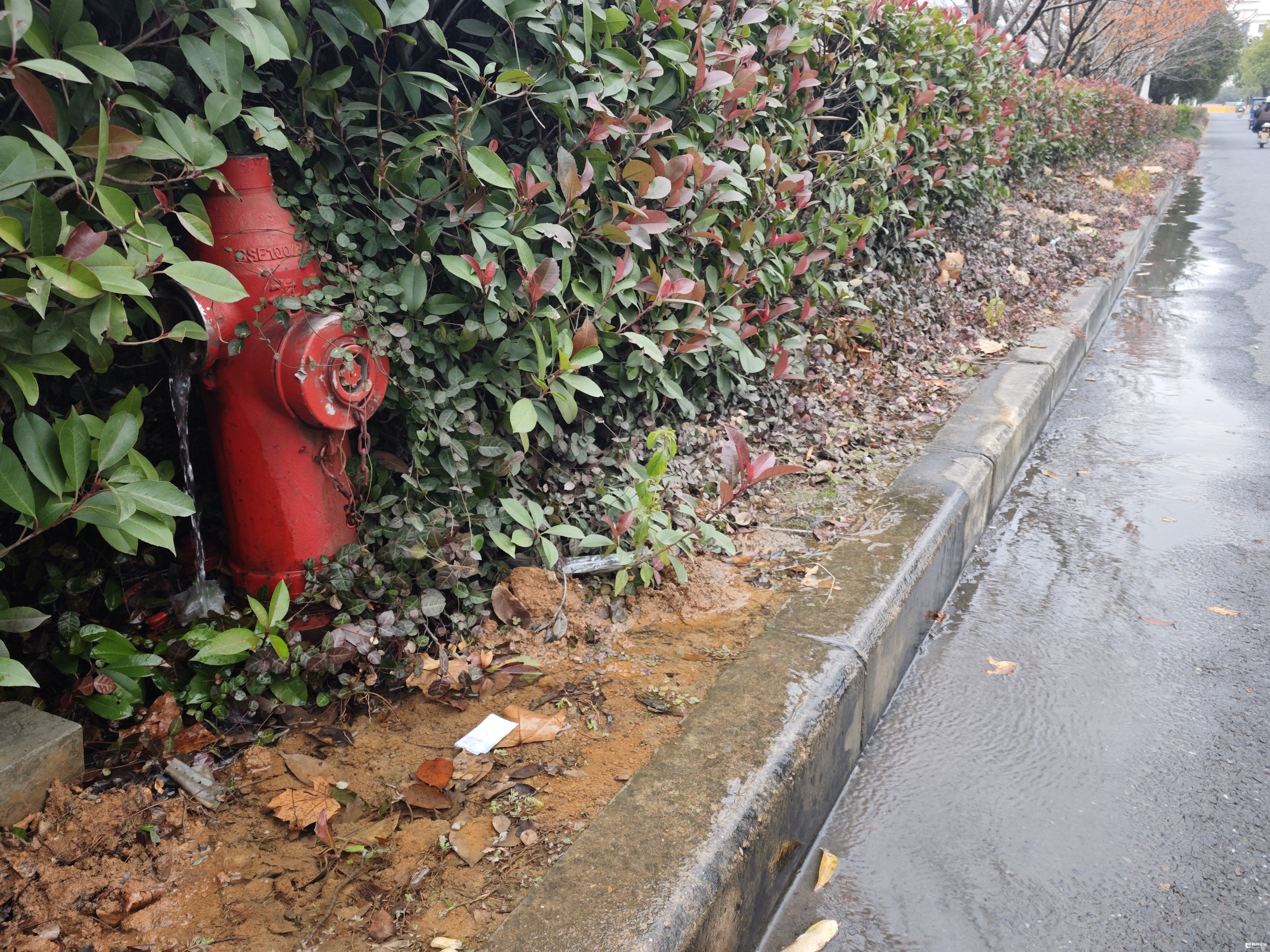 兴隆大街,与清波路交叉口的绿化带上,有一个红色的消防栓,出水口的水哗哗往外流,也不知道流了多久了。