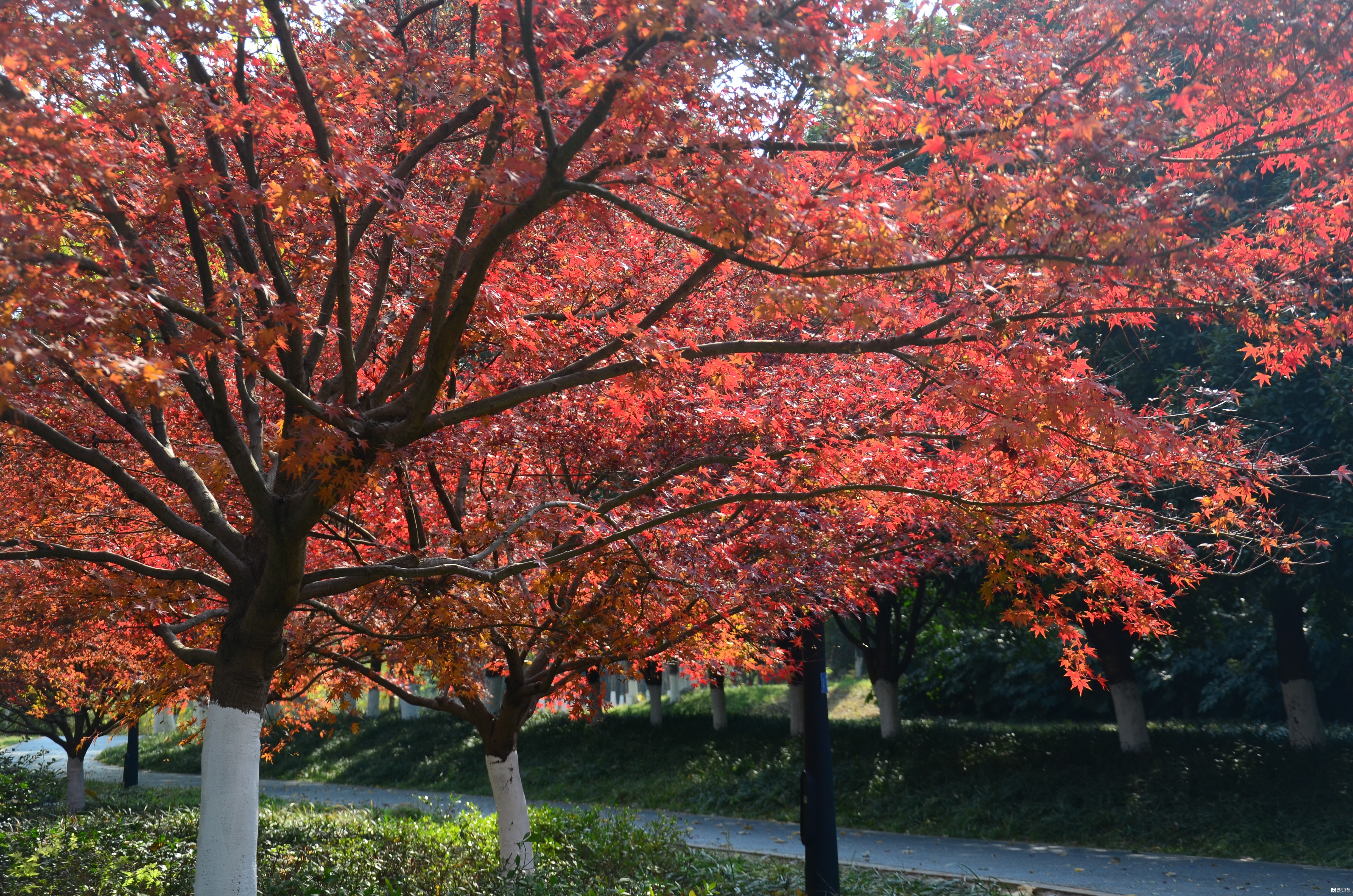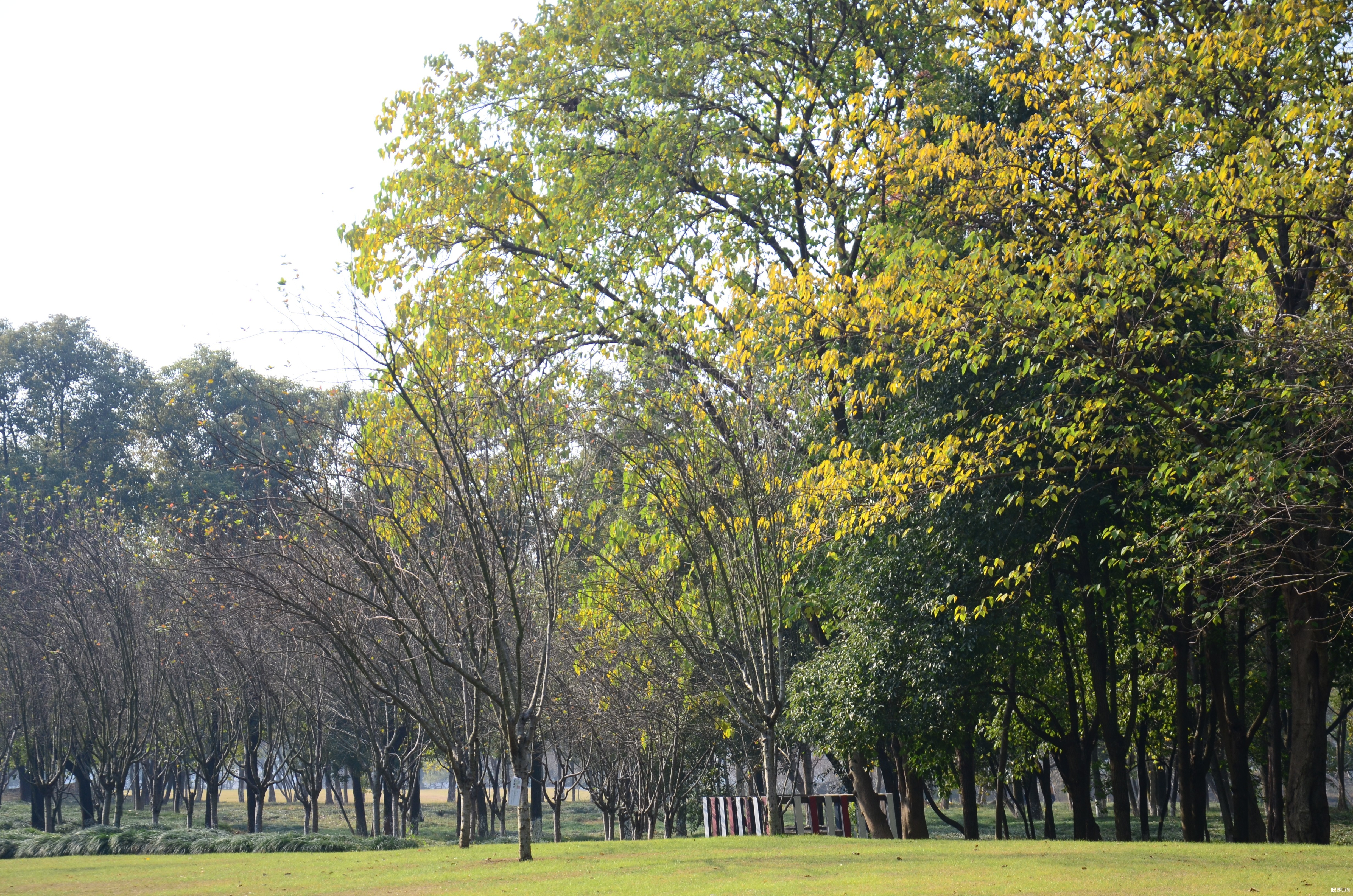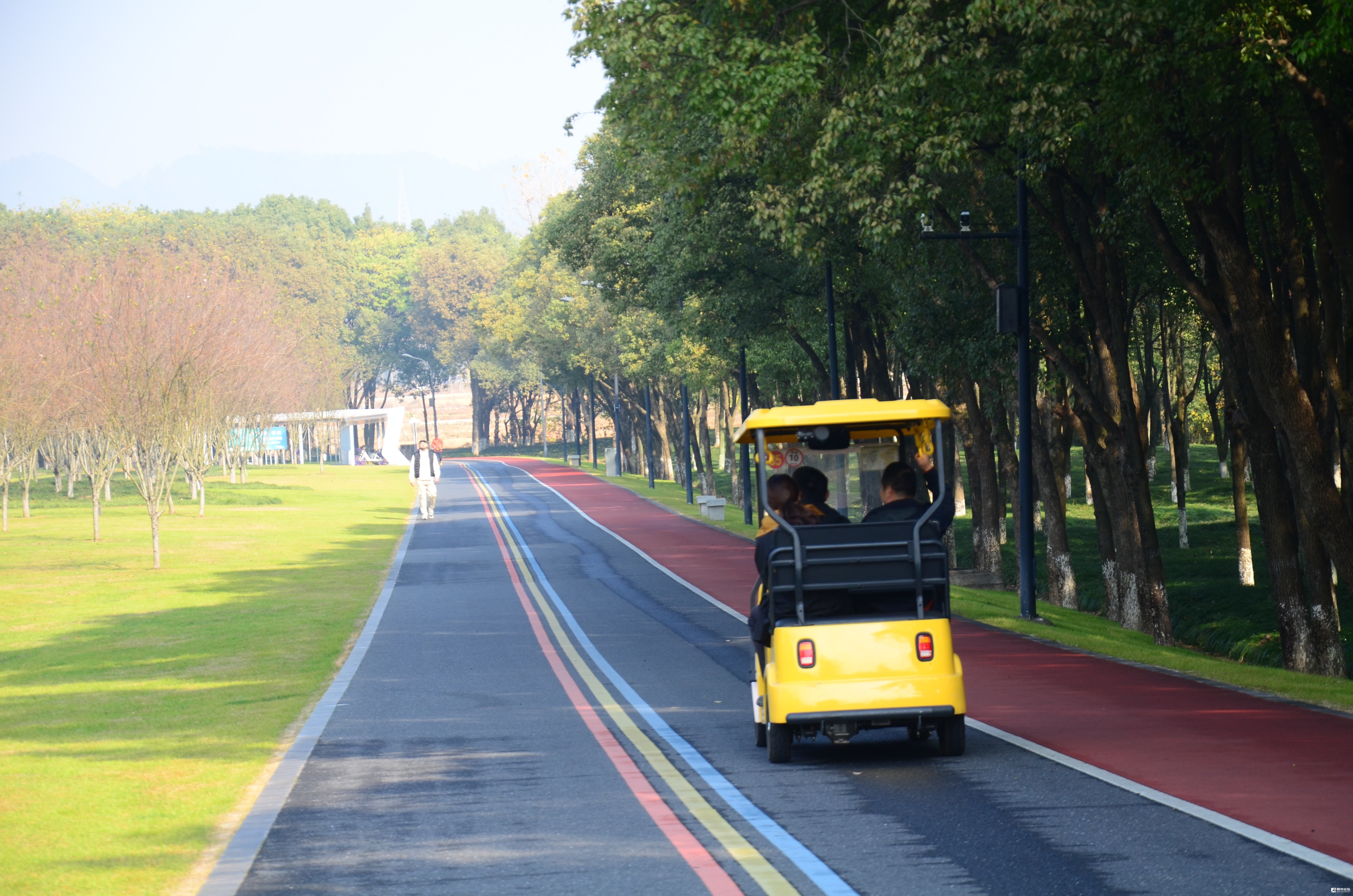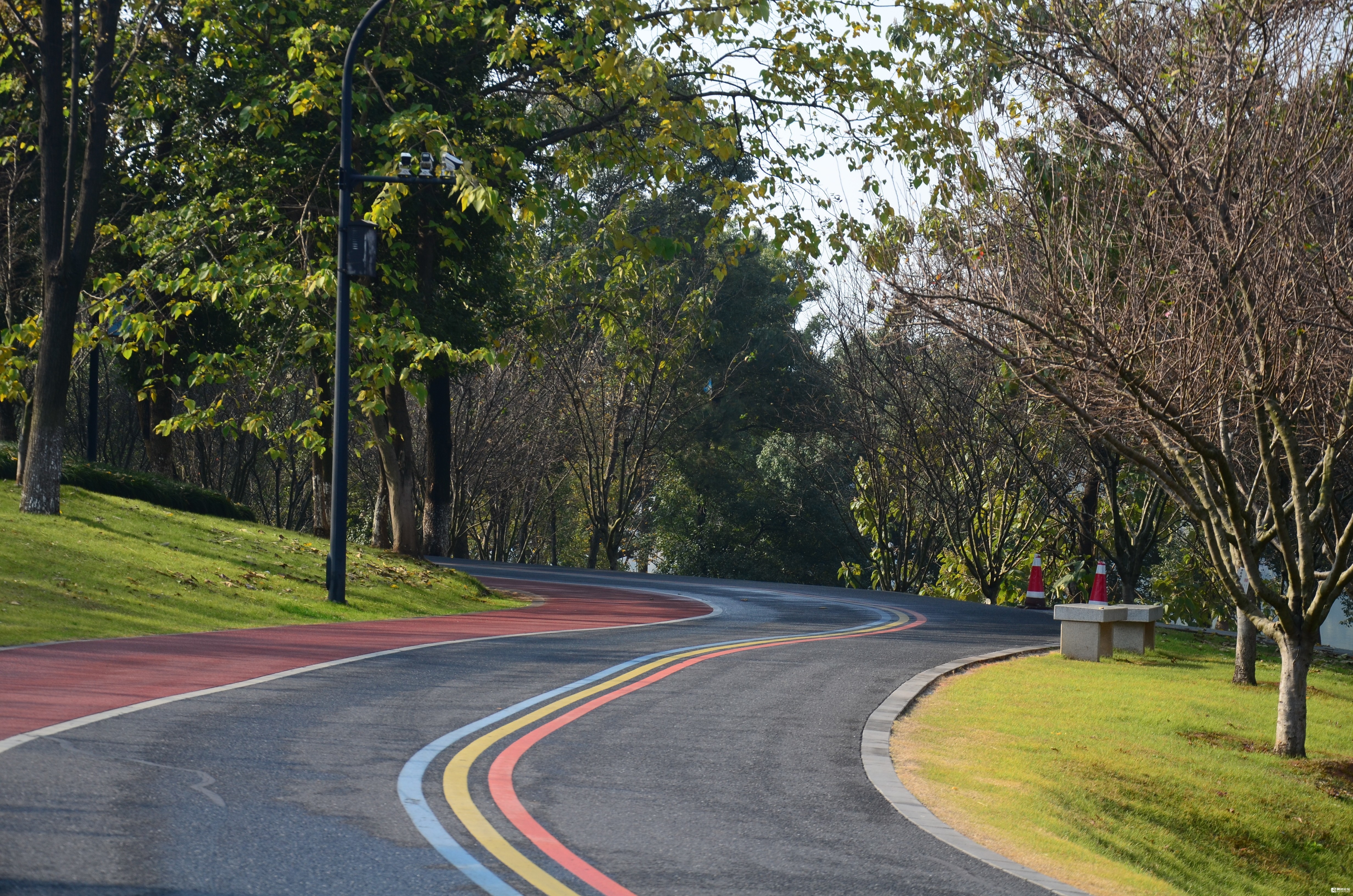 从西城北路大通路口这边,进入义乌植物园,可以看到建设水库的大坝和游步道外侧精心设置的长长的花框。 由于瞬时阵风,湖水泛起层层波涛,湖面仿佛突然间变得更广阔更浩瀚了。 中间画着三色线的园内道路,蜿蜒起伏,两旁的树木和草地,在蓝天白云的映衬下,空间感很强,有种天地人间尽收眼底的感觉。 深秋的金黄和红色,是镶嵌在绿色基调中的点睛之笔。湖畔的水中倒影,总是那样引人入胜,深不可测。 散步的,小跑的,骑行的,乘坐观光车的,一波波游客,在这个生机盎然,空气清新的世外桃园,尽情享受着运动和休憇的乐趣和幸福。 我们走着走着,看见密林深处,有那么一抹抹的金黄色树叶,因为阳光的照射,变得异常的显眼和夺目。 难道这不是大自然最美的馈赠吗?