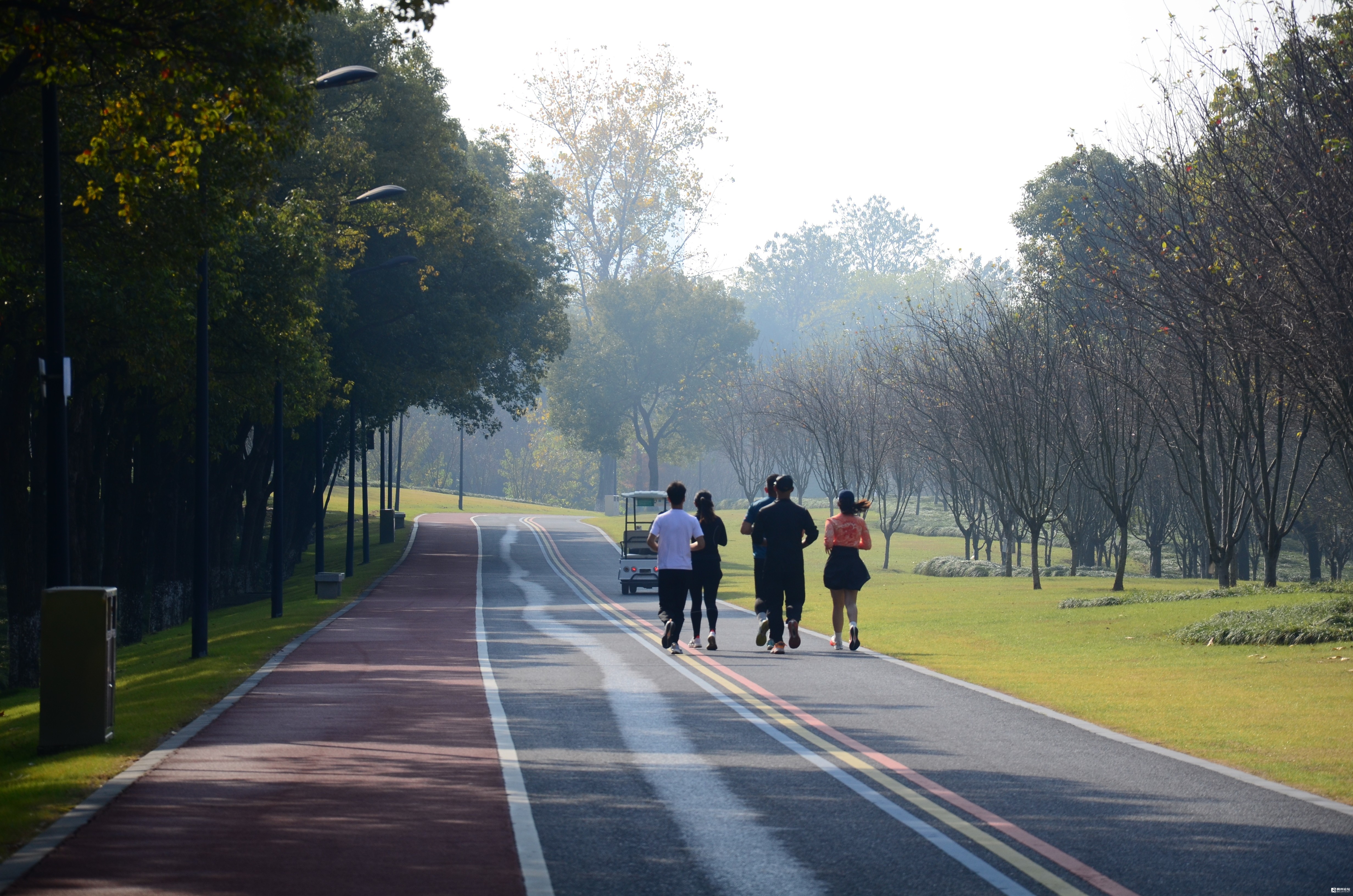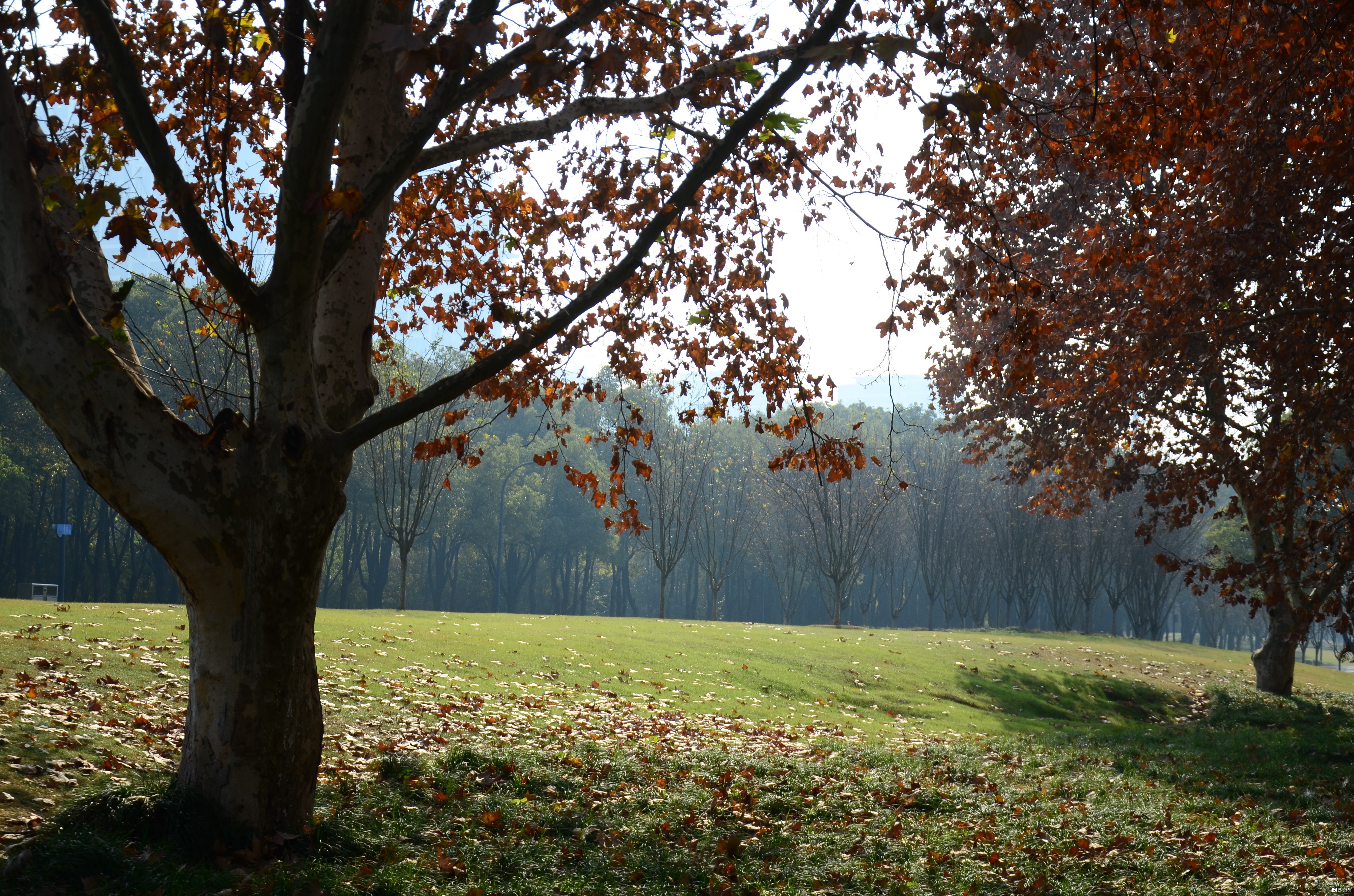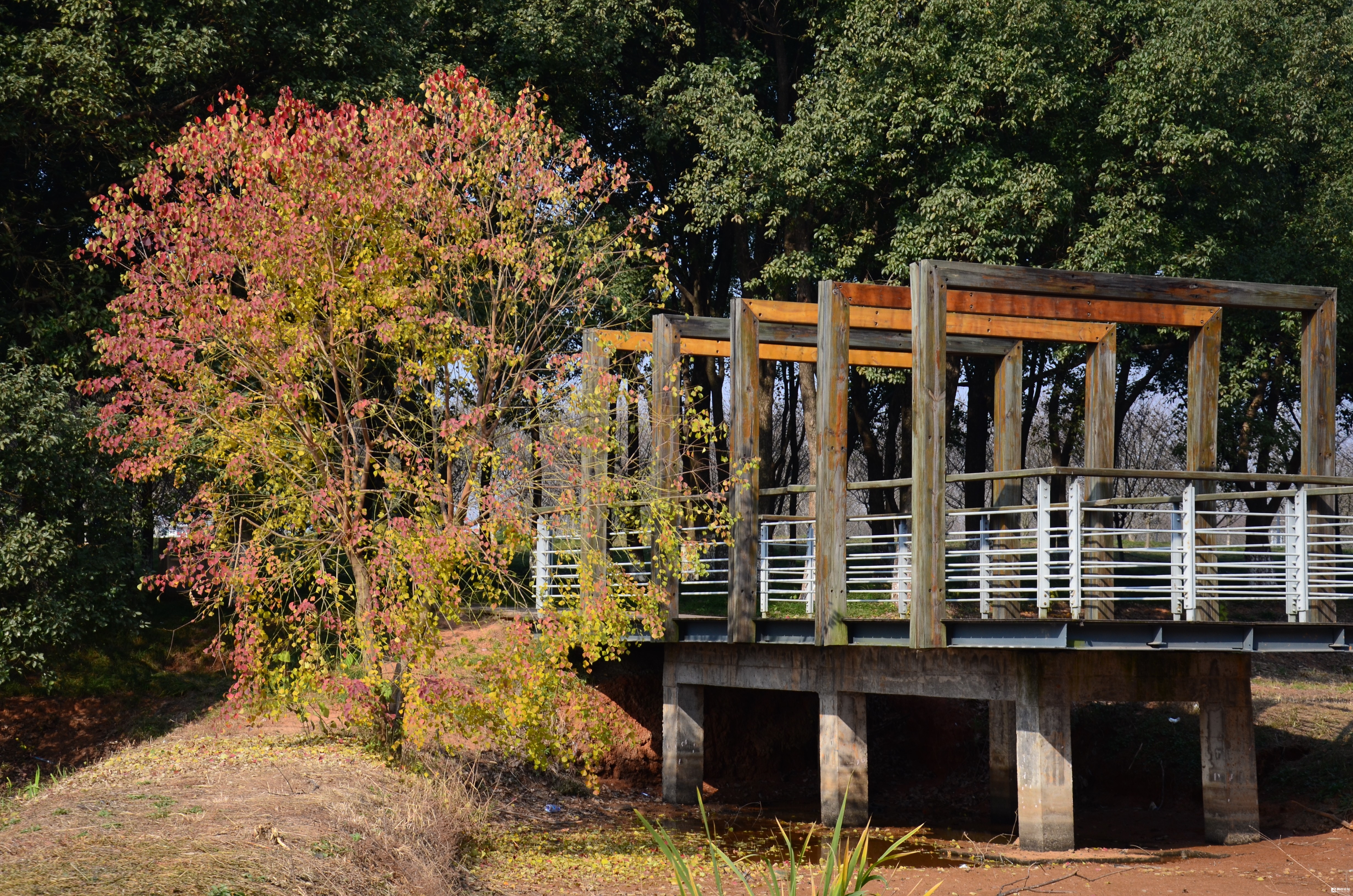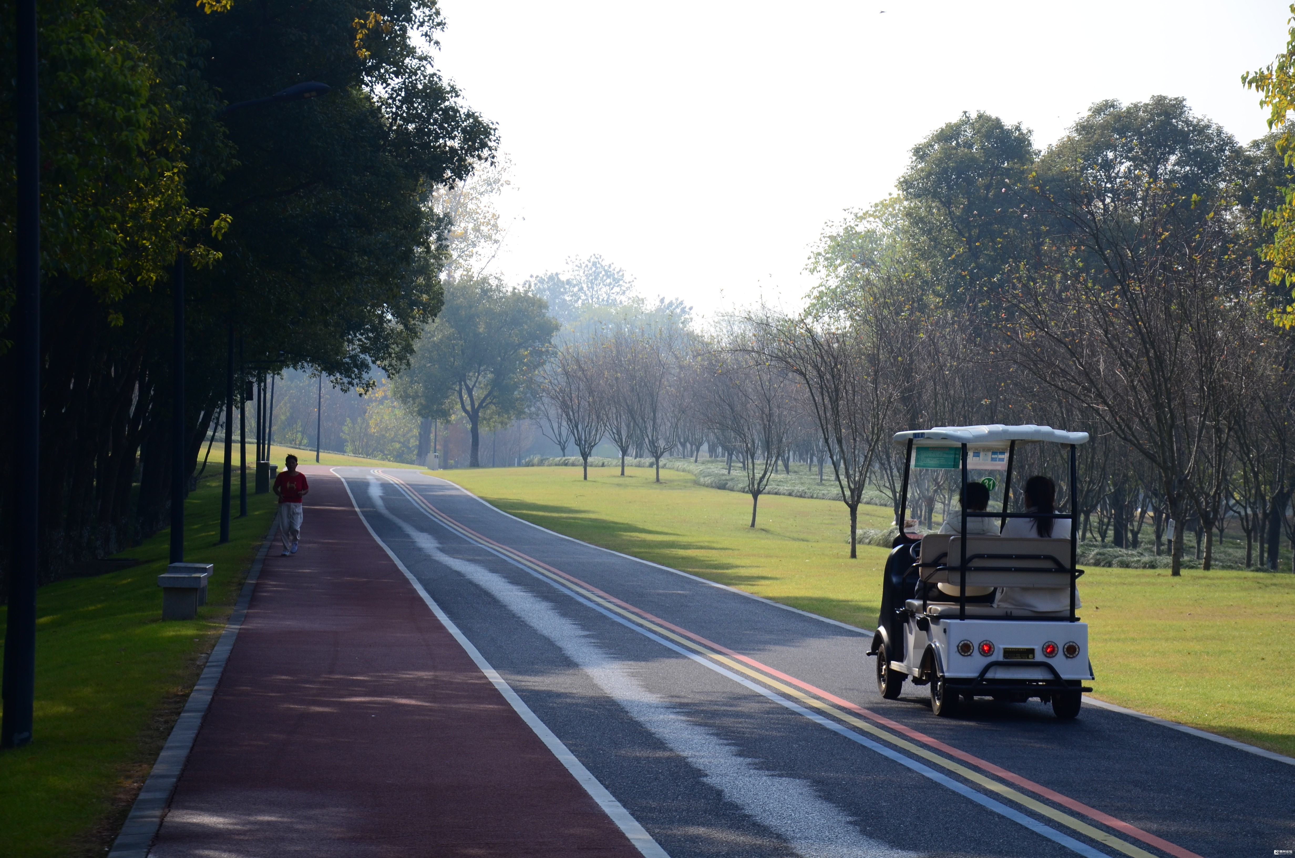 从西城北路大通路口这边,进入义乌植物园,可以看到建设水库的大坝和游步道外侧精心设置的长长的花框。 由于瞬时阵风,湖水泛起层层波涛,湖面仿佛突然间变得更广阔更浩瀚了。 中间画着三色线的园内道路,蜿蜒起伏,两旁的树木和草地,在蓝天白云的映衬下,空间感很强,有种天地人间尽收眼底的感觉。 深秋的金黄和红色,是镶嵌在绿色基调中的点睛之笔。湖畔的水中倒影,总是那样引人入胜,深不可测。 散步的,小跑的,骑行的,乘坐观光车的,一波波游客,在这个生机盎然,空气清新的世外桃园,尽情享受着运动和休憇的乐趣和幸福。 我们走着走着,看见密林深处,有那么一抹抹的金黄色树叶,因为阳光的照射,变得异常的显眼和夺目。 难道这不是大自然最美的馈赠吗?