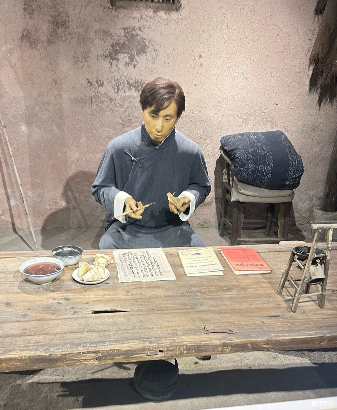 下午,我们怀着崇敬之心走进陈望道故居。推开那扇古朴的门,仿佛穿越回了那个风雨如晦的年代——就是在这间简陋的房间里,在油灯昏黄的光线下,在缺衣少食的艰苦条件中,陈望道先生蘸着墨汁、伴着米香,一字一句翻译出《共产党宣言》。这薄薄的小册子,却如一道惊雷划破暗夜,为迷茫的中国指明了前进的方向,播撒下革命的火种。站在故居中,仿佛仍能感受到先生伏案疾书的热忱,那份对真理的执着与信仰,跨越百年依旧震撼人心。