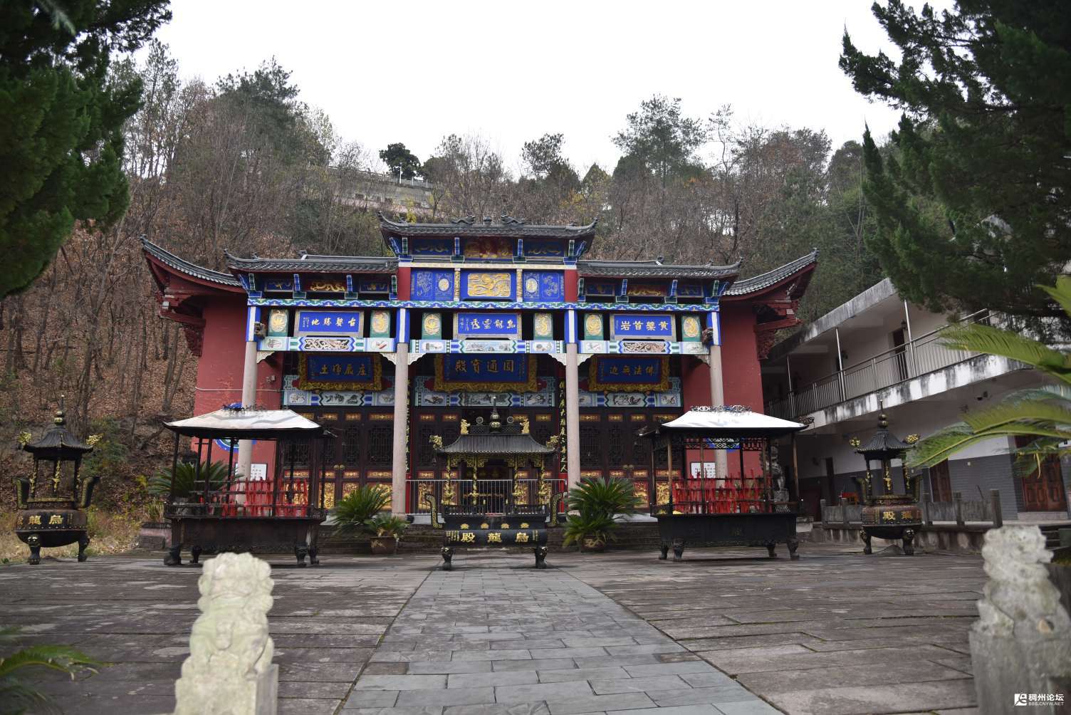 山路盘曲,转过一道山坳,眼前豁然开朗。乌龙殿的飞檐翘角,正挑着一片水洗般的青天,檀香的气息丝丝缕缕飘来,融入山间的湿寒,酿出一种独特的庄严。虽是阴雨天,香客依旧不少,捧着或粗或细的香束,神色虔敬。青烟盘绕在人影之上,交织成一片朦胧的纱帐,连身后一九九七年落成的圆通宝殿也显得柔和了。那朱漆的柱子阴云下依旧鲜亮夺目,气宇轩昂,可我的目光,却总被殿旁散落的几座小亭牵住。