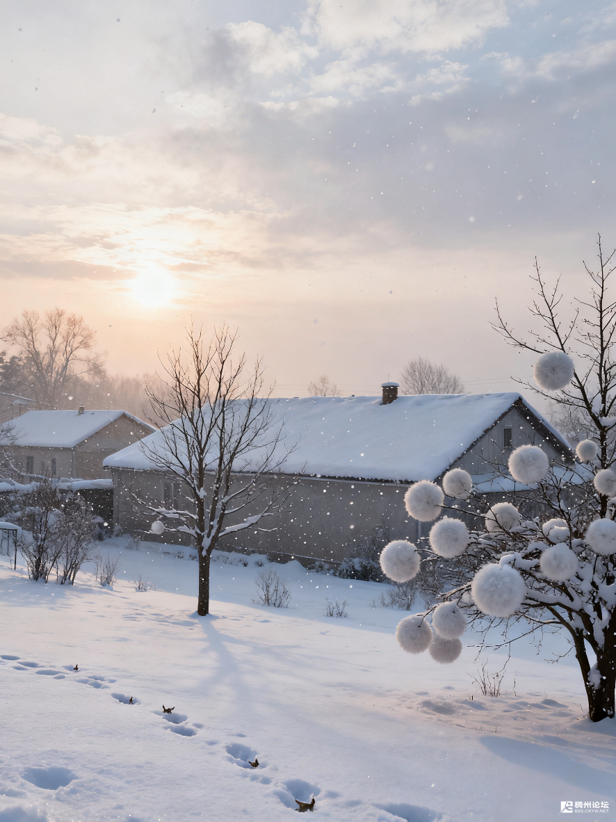 夜晚,月光洒在雪地上,将雪地照得如同白昼。我独自漫步在雪地里,感受着冬日的宁静与神秘。远处的村庄里,星星点点的灯光在夜空中闪烁,仿佛是一颗颗璀璨的星星。偶尔传来几声狗叫声,打破了夜的寂静,让人感到一种别样的温馨。