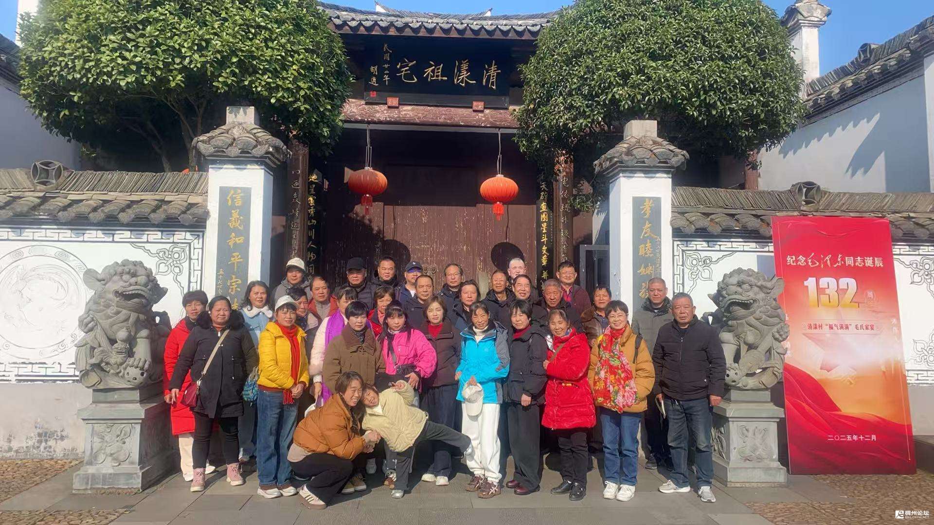 清晨的阳光透过古村的薄雾,洒在清漾祖宅斑驳的石阶上。一碗热气腾腾的长寿面被捧在手心,咸菜肉丝的香气混着蒸腾的热气,萦绕在2025年12月26日这个特殊的日子——毛泽东诞辰纪念日。三十余位来自义乌乐天艺术团的文艺工作者与佛堂文联作协、书画、摄影等各社团人士,在这江南毛氏发祥地,以一碗朴素的面条,开启了一场为期两天的精神寻根与创作汲养之旅。