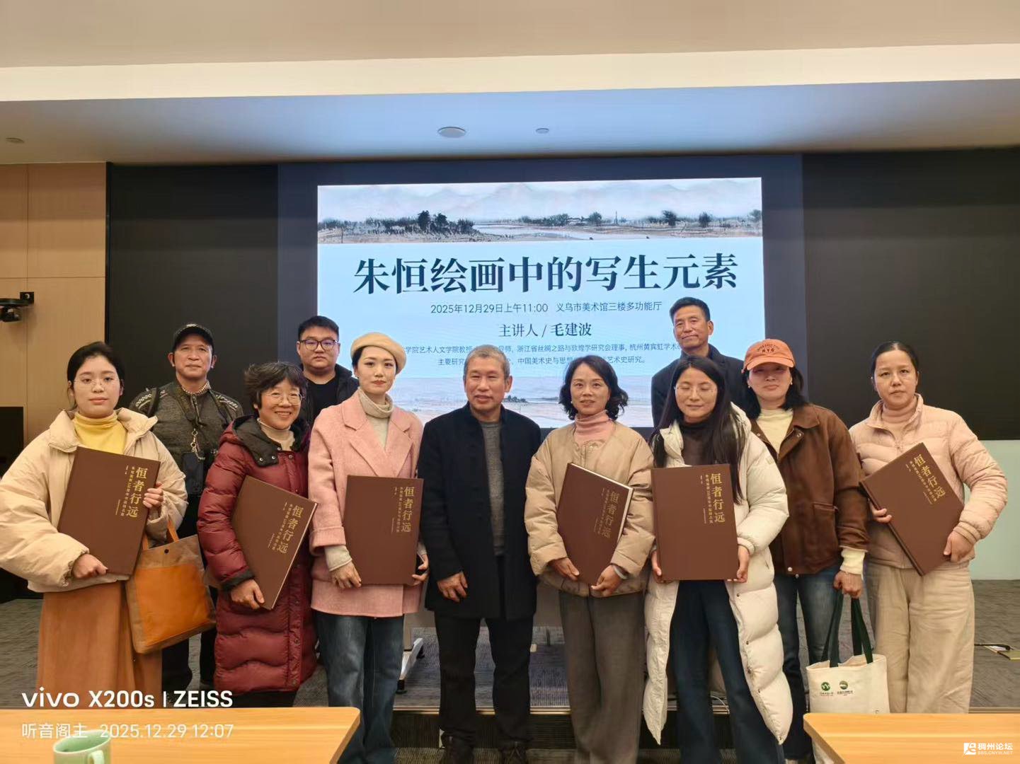 12月29日,纪念朱恒诞辰110周年画展的活动在美术馆开展,本次活动由中国美术学院艺术人文学院教授、博士生导师,同时担任浙江省丝绸之路与敦煌学研究会理事及杭州黄宾虹学术研究会会长的专家毛建波主持讲话,为在场各位书画爱好者深入解读朱恒的艺术成就与绘画精神,引领大家更好地领略这场绘画展所蕴含的艺术价值与历史意义。