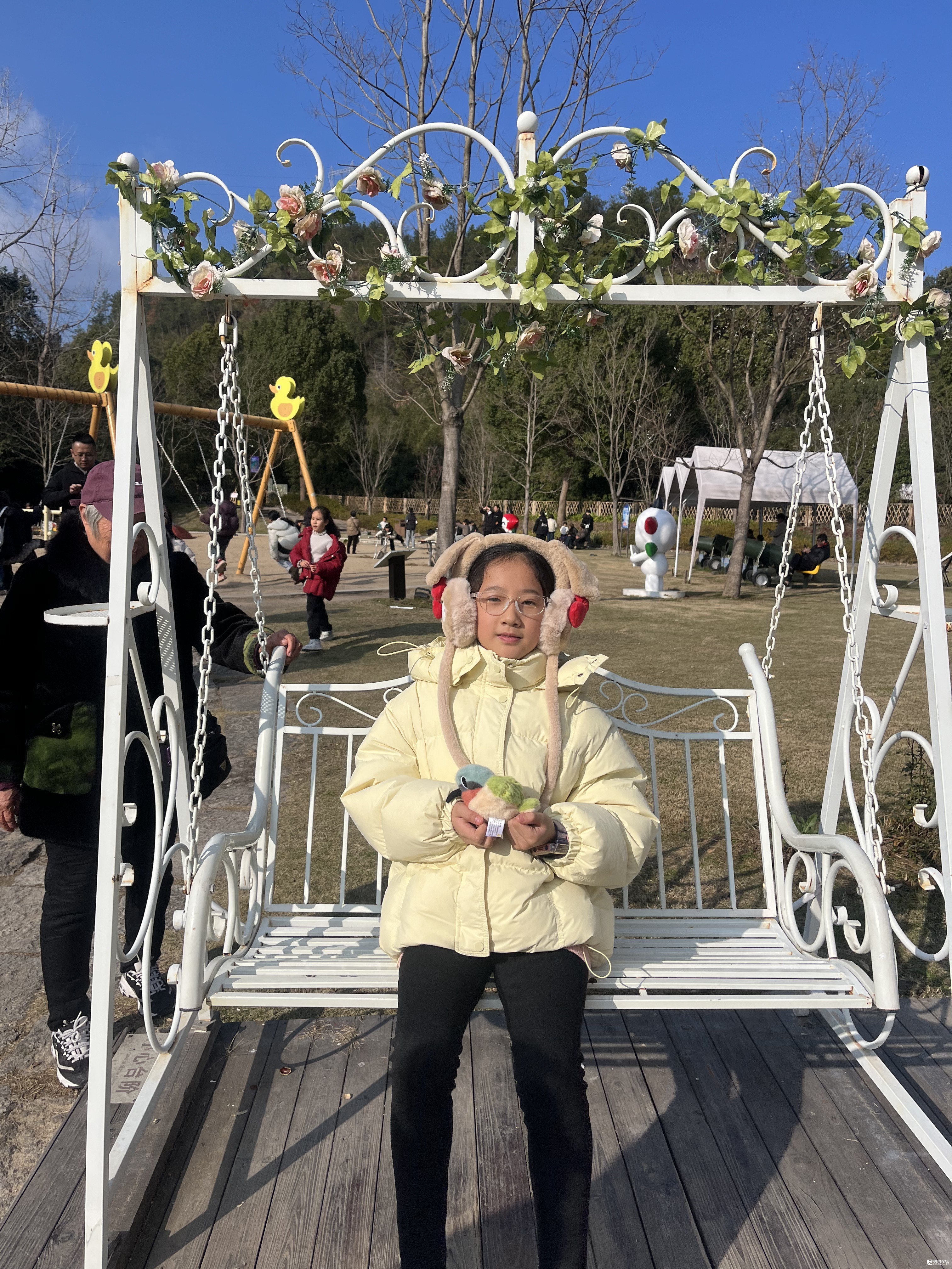 停好了车,就入了景区,来到了一个草地,里面都是小孩子玩的设施:滑滑梯,秋千,沙地……对于女儿这个年纪,已经不大适合,因此没一会儿我们就朝着里面继续前进。