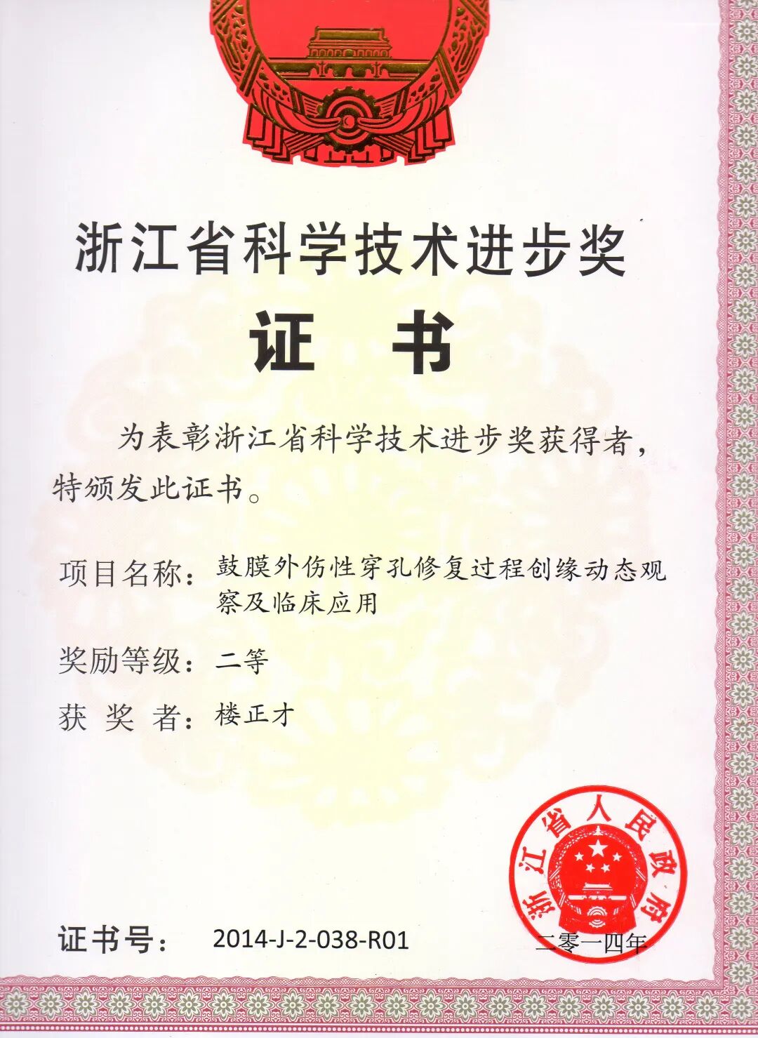 楼正才主任在鼻出血治疗及鼓膜穿孔修复等研究领域具有深厚的学术造诣,是本次榜单数据背后最具代表性的临床突破之一。尤其是鼓膜穿孔修复颠覆传统治疗理念,由于其简单、低费用等优势得到美国、澳大利亚等国际学者专题讨论,研究成果先后以第一完成人获浙江省科技进步奖二等奖一次、三等奖一次;以第二完成人获得省级科技进步二等奖、三等奖各一次。