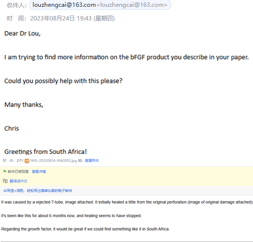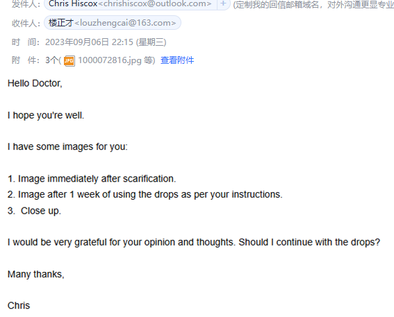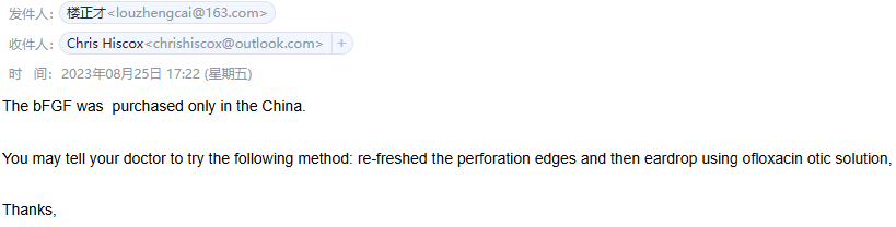再次邮件沟通南非当地医生的治疗建议,希望听取楼正才主任的相关建议