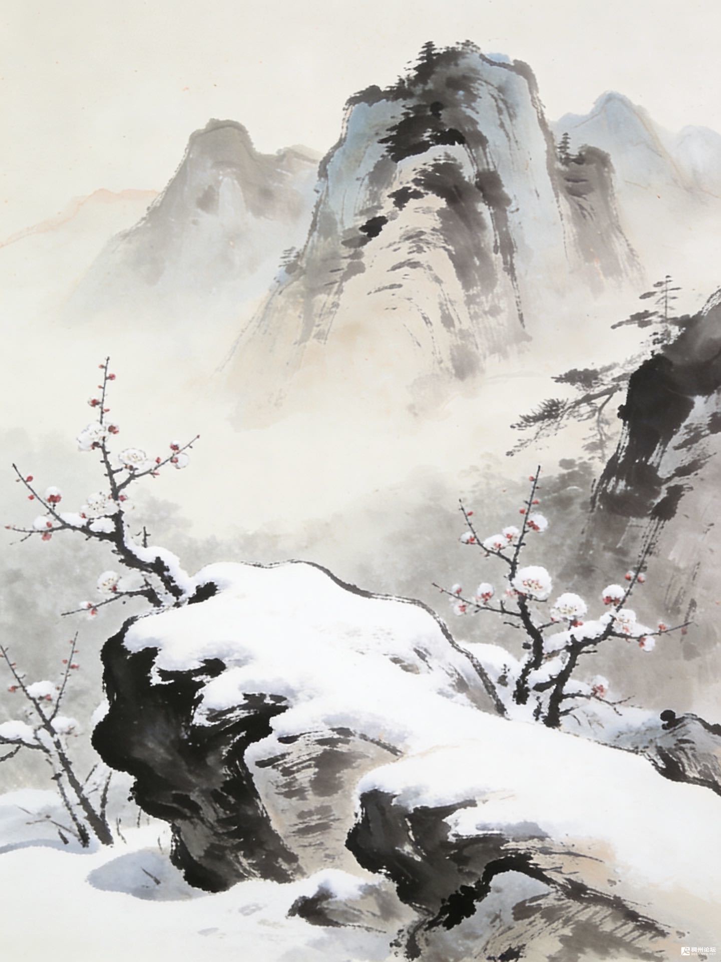 墨色的岩上积着厚雪,像谁把云絮按在了上头。梅瓣白得透明,蕊子却艳,一点一点,把雪的冷戳出个小窟窿。远山笼着雾,像没写完的诗,留着空白等风填。