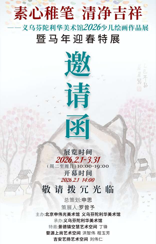 童真绘新春,稚笔送吉祥:2026少儿绘画作品展暨马年迎春特展即将在浙江义乌芬陀利华美术馆启幕
