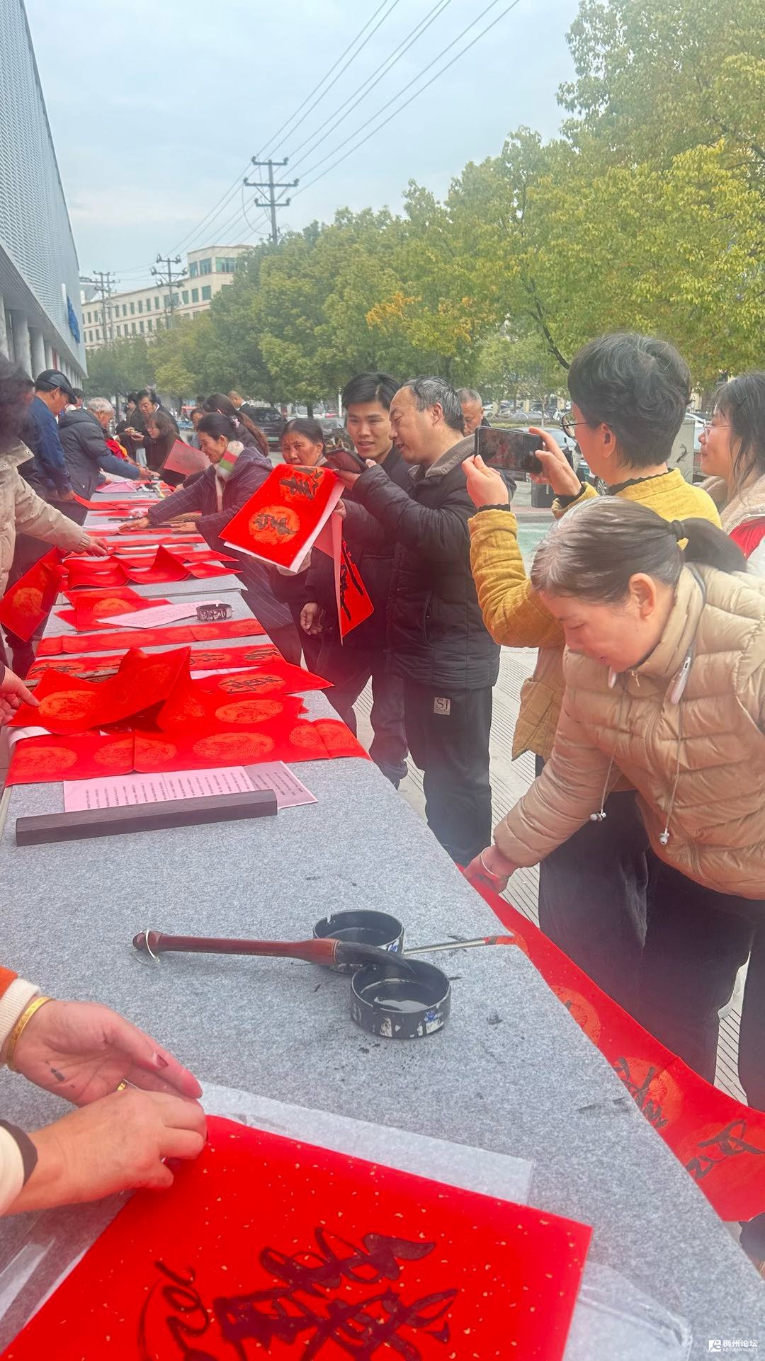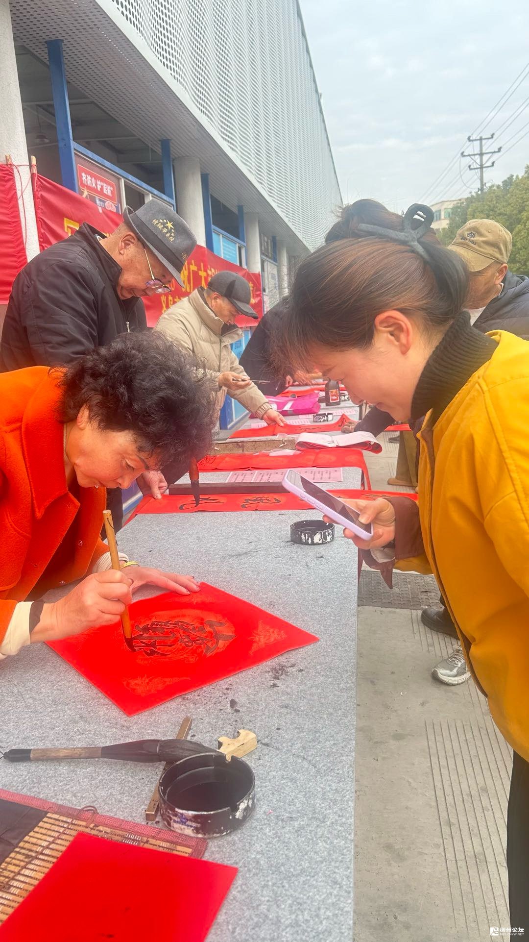 望着眼前一张张漾着满足的笑脸,听着一句句发自肺腑的感谢,心中忽然涌起一股难以言喻的暖流。那些平日里在案头反复研磨的笔画,那些为了一个字的结构而琢磨许久的时光,在此刻都有了最生动的注解。我们蘸着墨香写下的“大吉大利”“招财进宝”,不仅仅是纸上的吉祥语,更是将书法这门古老艺术化作了传递温暖的纽带。看着大姐小心翼翼地将春联折好,说要带回老家分享这份喜悦;听着大爷念叨着“明年还盼着你们来”,那份被需要的感觉,让我们深深体会到:学书法,从来不止于笔墨技法的精进,不止于对传统文化的传承,更在于能用这手中的笔,为寻常百姓的生活添一份色彩,为平凡的日子送一份祝福。当书法走出书斋,融入市井烟火,当笔墨与民心相通,这份艺术便有了更厚重的意义——它是为民服务的一种方式,是用文化的温度焐热生活的点滴,是让传统在贴近群众中焕发生机。此刻,墨香未散,笑意仍浓,我们愈发明白,笔下的每一个字,都承载着一份沉甸甸的心意,而这份心意能换来大家的舒心与快乐,便是学书法最珍贵的价值所在。