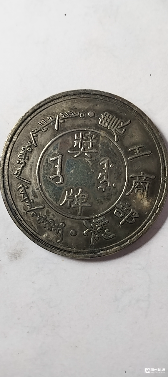 - 正面:铸有"农工商部制"汉字及对应的满文,中间为"奖牌"二字