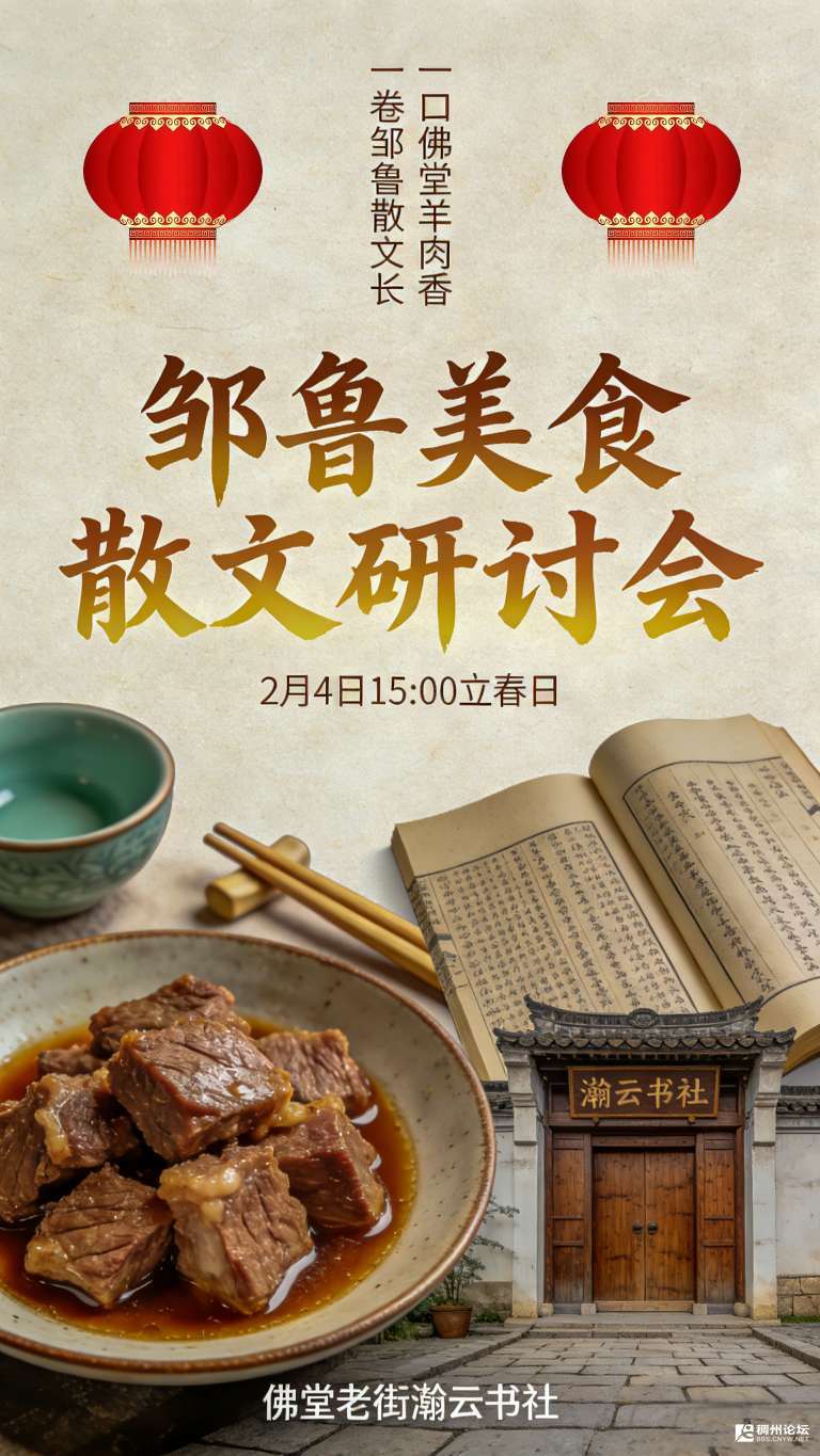 时值丙午立春,万物复苏。在浙江四大古镇之一的义乌佛堂,一场别开生面的“邹鲁美食散文研讨会”于老街深处的瀚云书社悄然举行。没有繁复的仪式,不设刻板的议程,唯有书香、茶香与即将升腾的食物香气交织,十余位文人学者围坐一堂,以最放松的姿态,品味文字,畅谈风物,共同探讨邹鲁先生笔下的美食散文如何以味觉为舟,承载起一方水土的深沉文化。