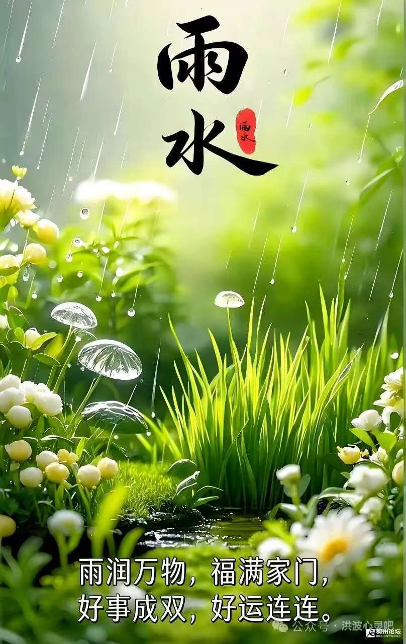 雨水逢年味,春回万物苏。东风拂百草,垂露润千株。