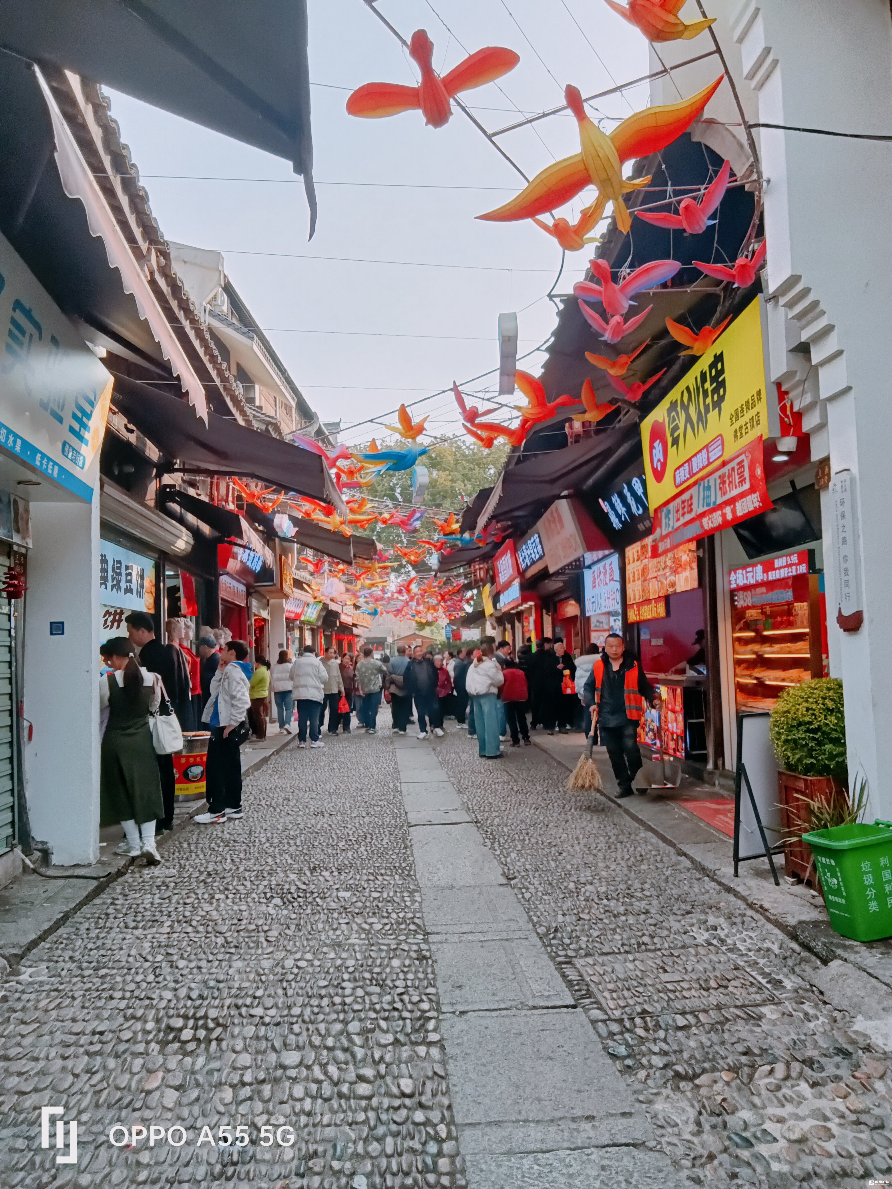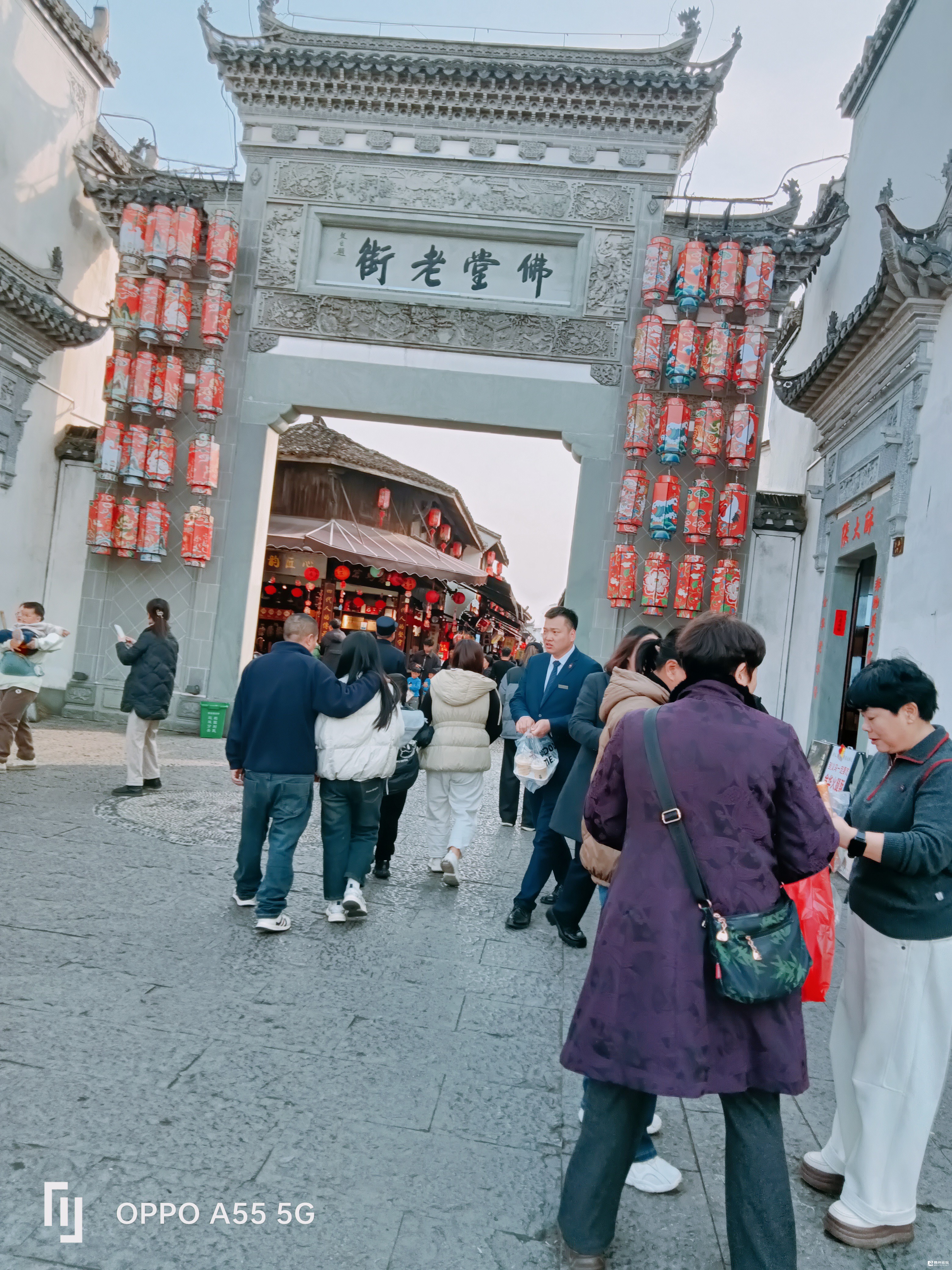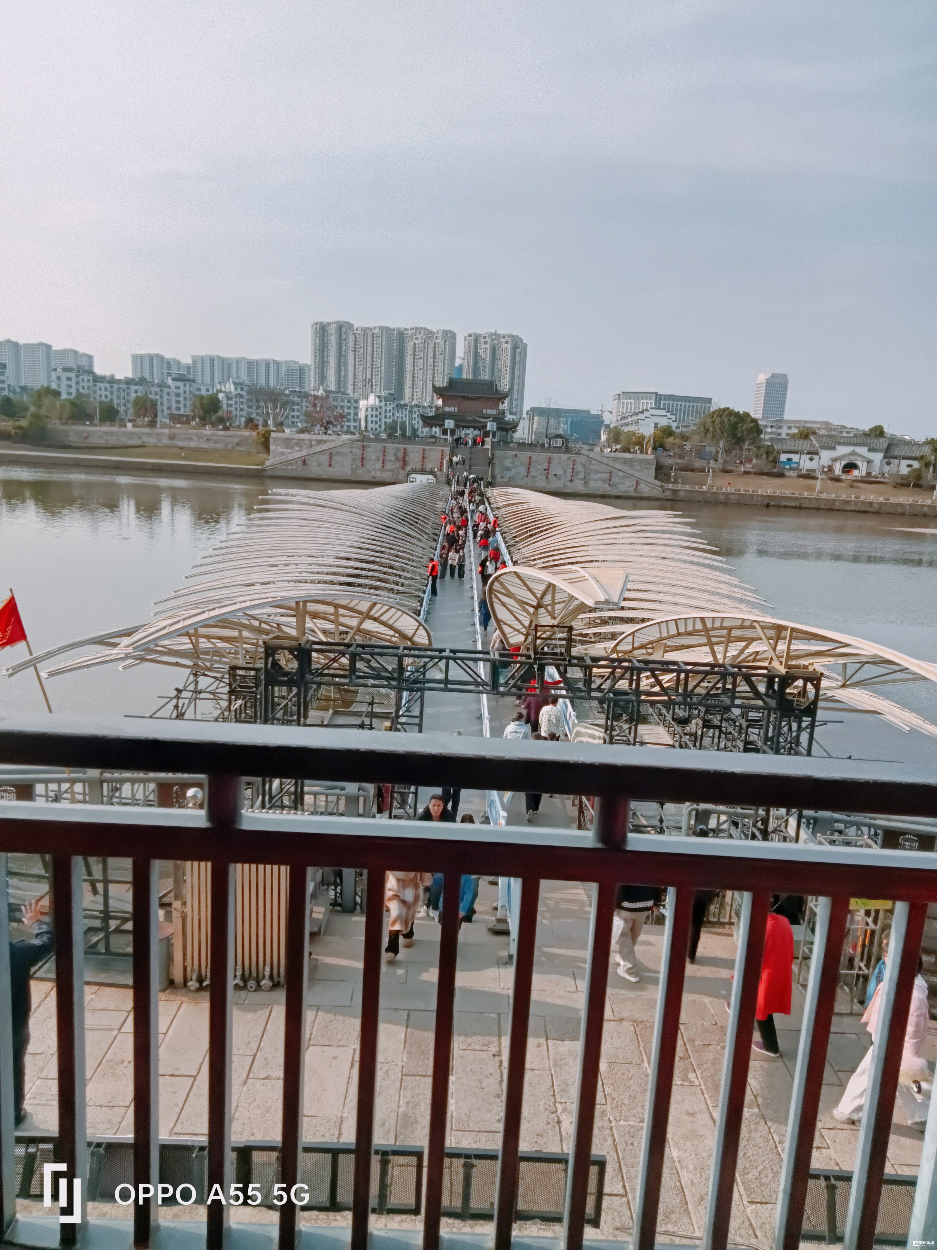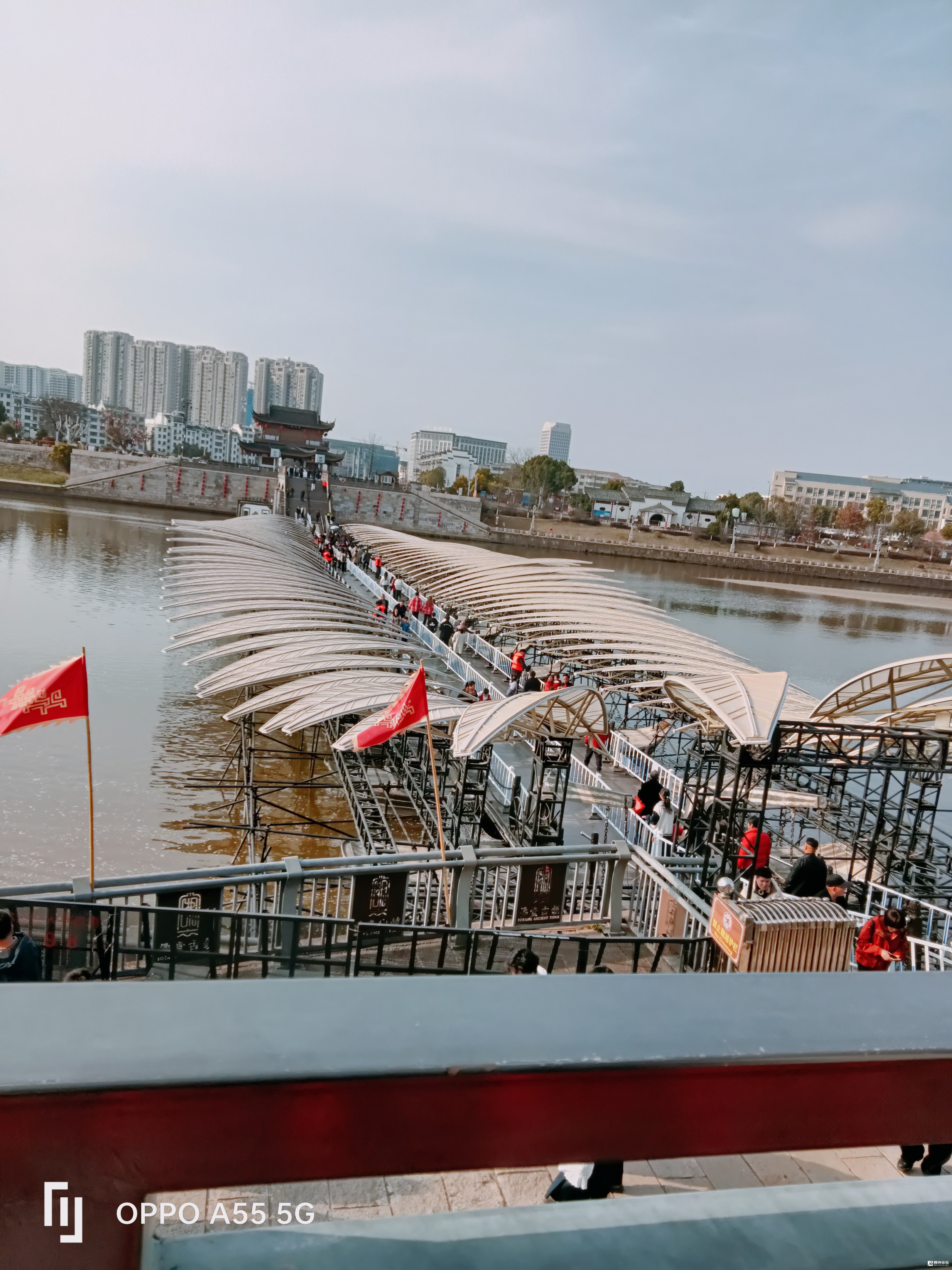 总台央视春晚,序幕里,那磅大的双排飘动的羽毛,这镜头就取在佛堂老街浮桥上……现依然展示着。节后佛堂老街,还是一派节日气氛,人潮涌动。