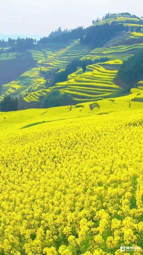 往田野走去,那番景致更令人沉醉。大片油菜花把土地染成金色的海洋,漫过田埂,漫上山坡,连空气都被染得暖洋洋的。风过时,花浪层层叠叠地涌,淡淡的花香便跟着漫过来,不浓不烈,却丝丝缕缕沁人心脾。抬眼望去,天是水洗过的蓝,云是棉花般的轻,花是能焐热人心的暖,连呼吸都裹着蓬勃的生机与攒动的希望。
