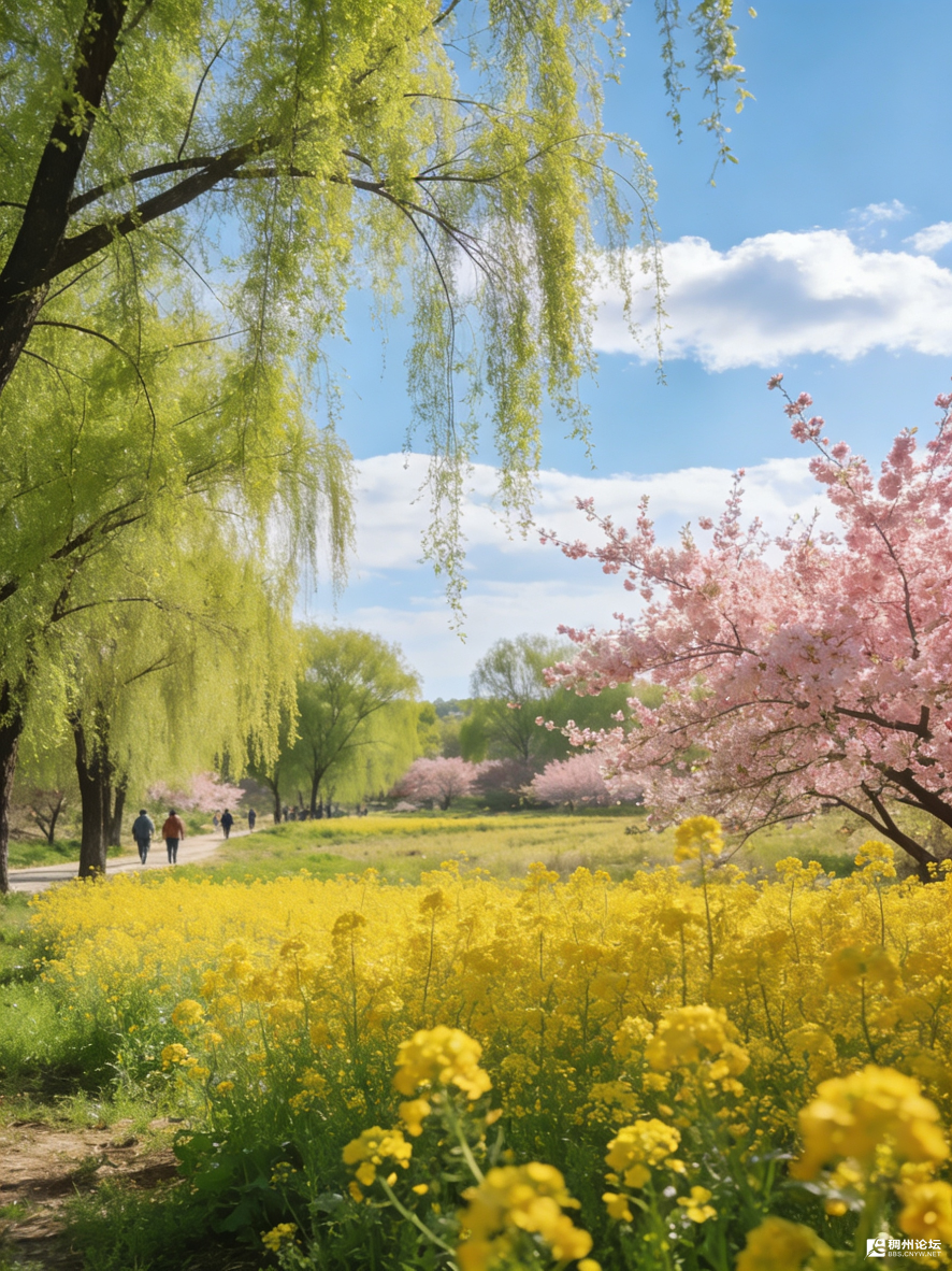 这阳春三月,没有盛夏的燥热如焚,没有深秋的萧瑟如泣,只有这般温软的时光,像母亲织就的锦缎,裹着满溢的生机。让人忍不住放慢脚步,伸手去接这漫天漫地的春光,把满心的欢喜都揉进这三月的风里——风便带着这欢喜,去吻每一朵花、每一片叶,让整个世界都浸在甜甜的春意里。