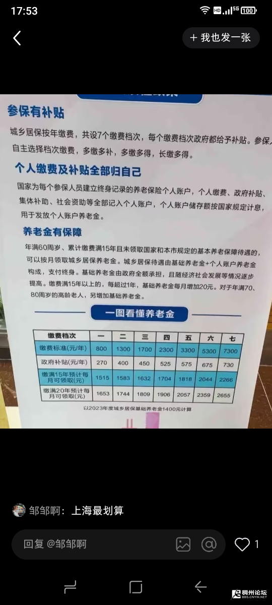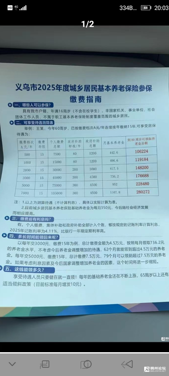 义乌交500一年,补贴80元一年。退休之后发443元左右。。而上海交800一年,政府补贴270,退休之后发1515元。