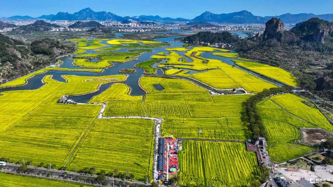 我想起了导游的介绍,这里原来是火山遗迹,8000万年的地质演化,塑造了石柱峰、将军岩、孔雀岩等奇峰异石;而今天,这里又是典型的田园风光,春日油菜花、秋日金色稻田,季季有景,岁岁不同。火山体的刚硬与田园风光的柔美,在这里完美地交融。站在山顶,我不禁感慨:大自然的伟力与人类的智慧,在这片土地上交相辉映,共同绘就了这幅绝美的春日画卷。