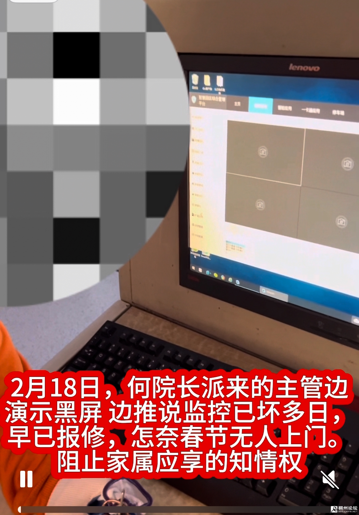 2 月 18 日,我们想查看监控了解事发经过,却遭到院方百般阻拦,先是以黑屏故障、春节无人维修为由推脱,待我们自己找到能正常查看的画面时,又被制止,甚至报警驱赶家属。