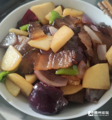 春天的脚步近了,餐桌上也该添些新滋味,便挑了块色泽油润的腊肉,又配了紫莹莹的洋葱、脆嫩的菜椒和金黄的土豆,想着用这几样家常食材,炒一盘热乎的腊肉。