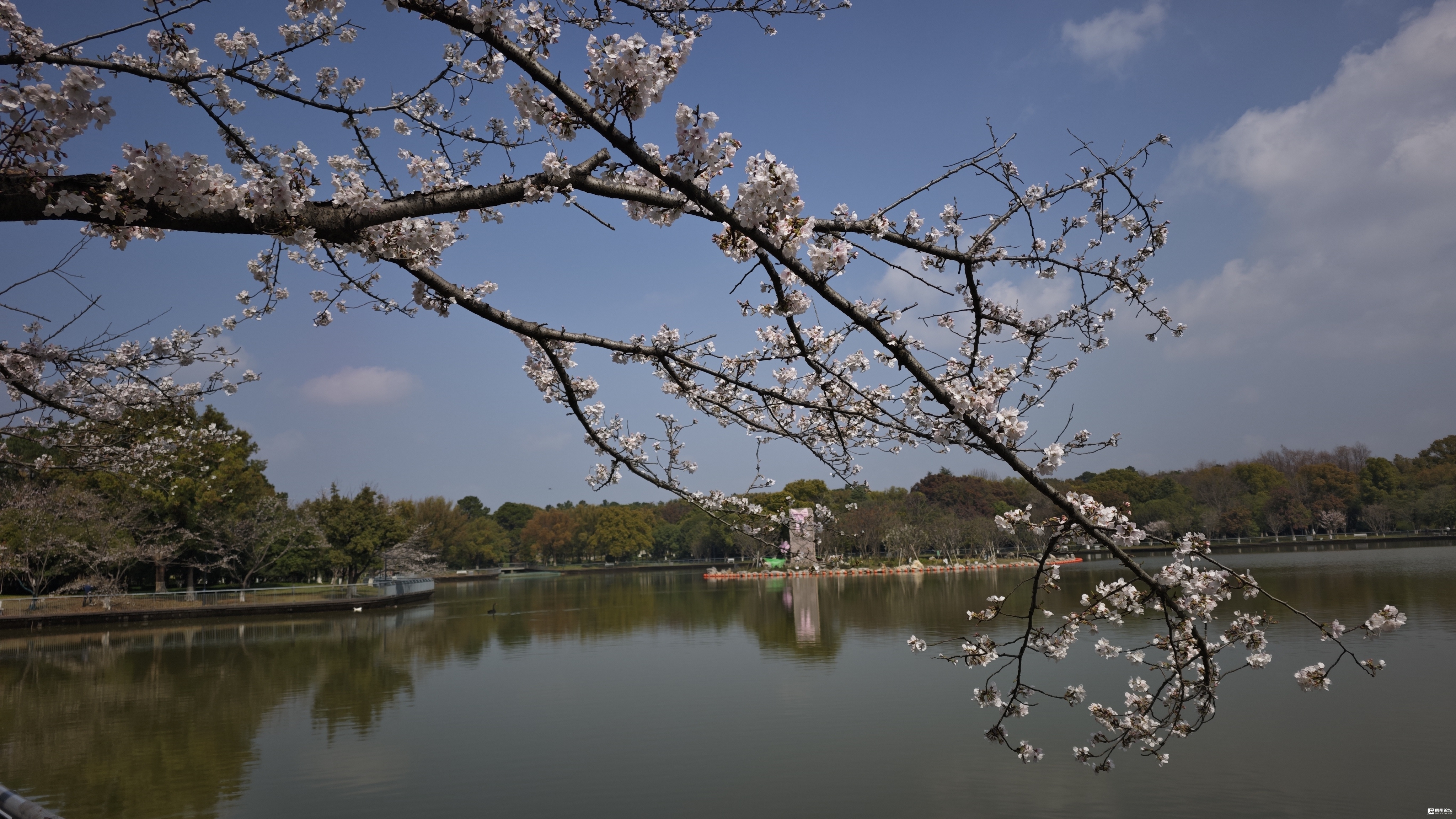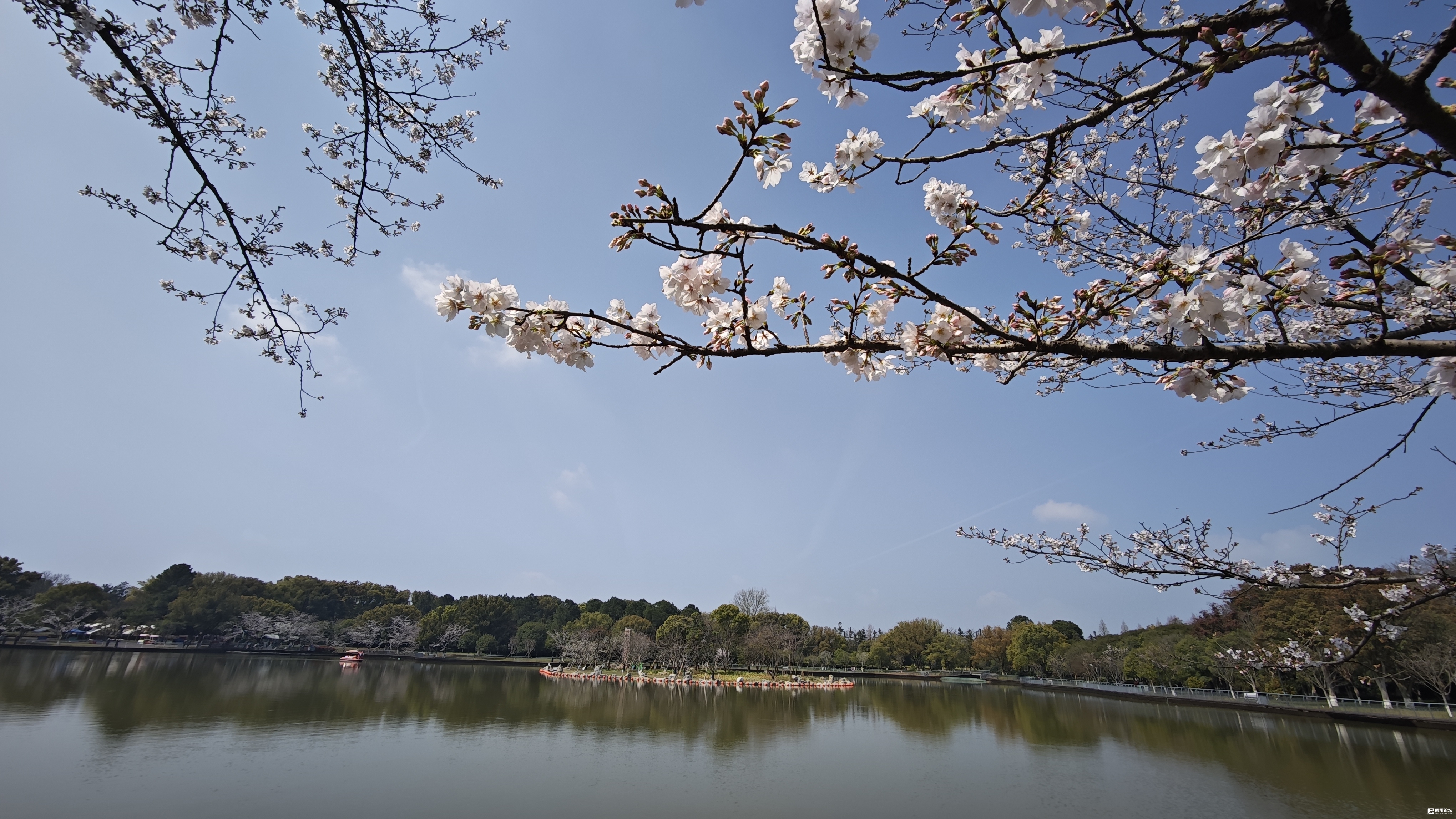 春暖花开,惠风和畅,义乌植物园樱花湖畔的樱花,开的正艳。