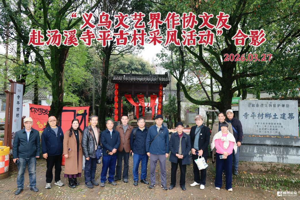 春雨霏霏,烟岚蒙蒙,将浙中大地晕染成一幅温润的水墨。今天,由义乌市文艺界作协会员、宗泽文化研究会文史传承研究者、书画家、摄影师组成的采风团一行,在冯老师的带领下,循着绵绵雨丝,踏春造访中国历史文化名村寺平古村。十余位同仁结伴而行,以笔墨为媒、以镜头为眼,开启一场沉浸式古村落采风,探寻藏在烟雨深处的古村文脉与田园诗意。