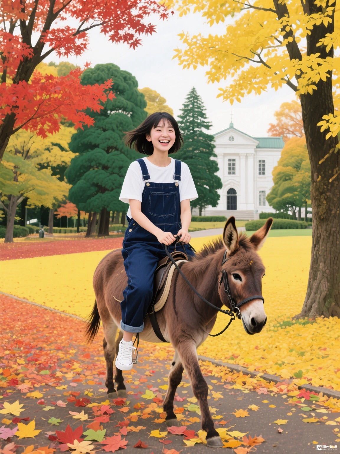 人们总说“要去远方看秋”,可骑在小驴背上才懂——秋不在山巅水涯,就在这每一步都“咯吱”响的落叶里,在小驴耳朵忽闪的俏皮里,在风把衣角掀成翅膀的瞬间里。