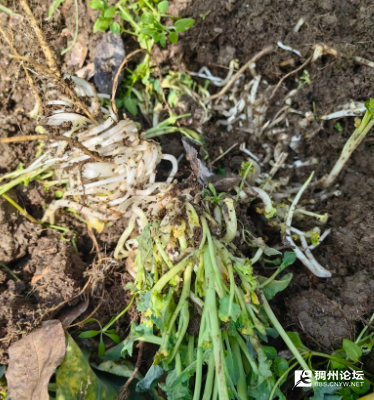 最近我一直在忙着沙田里的垦荒,准备把地整理出来种芋头、山芋、香瓜、芹菜与空菜。我已有相当长的时间没去田里看西兰花了。昨天下午去瞧,唉,气死我了,有的西兰花居然开花了!这粉粉的黄色花蕊便是它开的花。这说明它变老了,已经不能食用了。临近清明,又到种菜的旺季了。看来我只有把它们全部连根拔起来,把地空出来种别的菜了。拔出来的西兰花棵子堆起来像一座小山一样。西兰花的根系特别发达,个别的根上还长出了许多嫩芽。