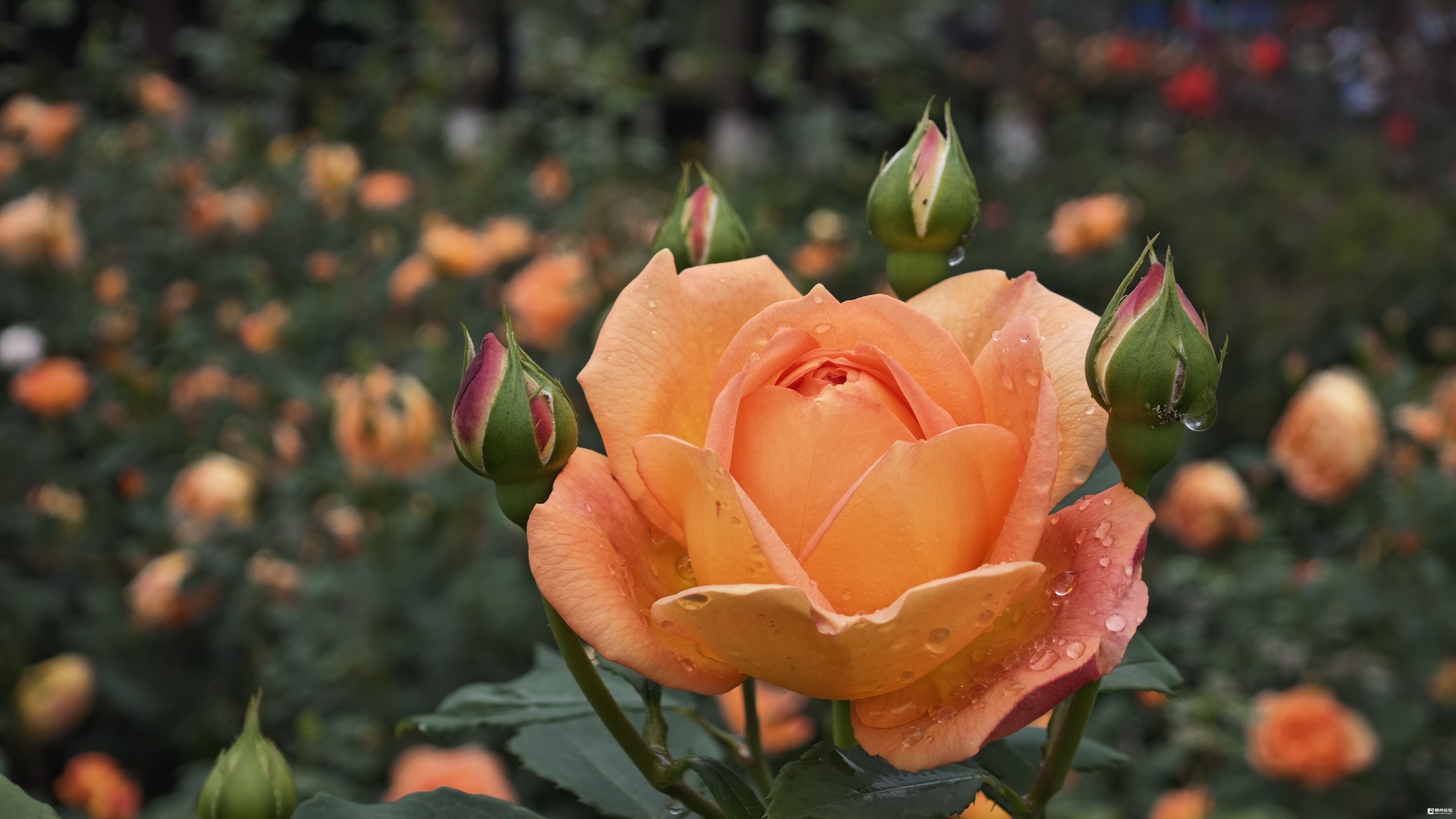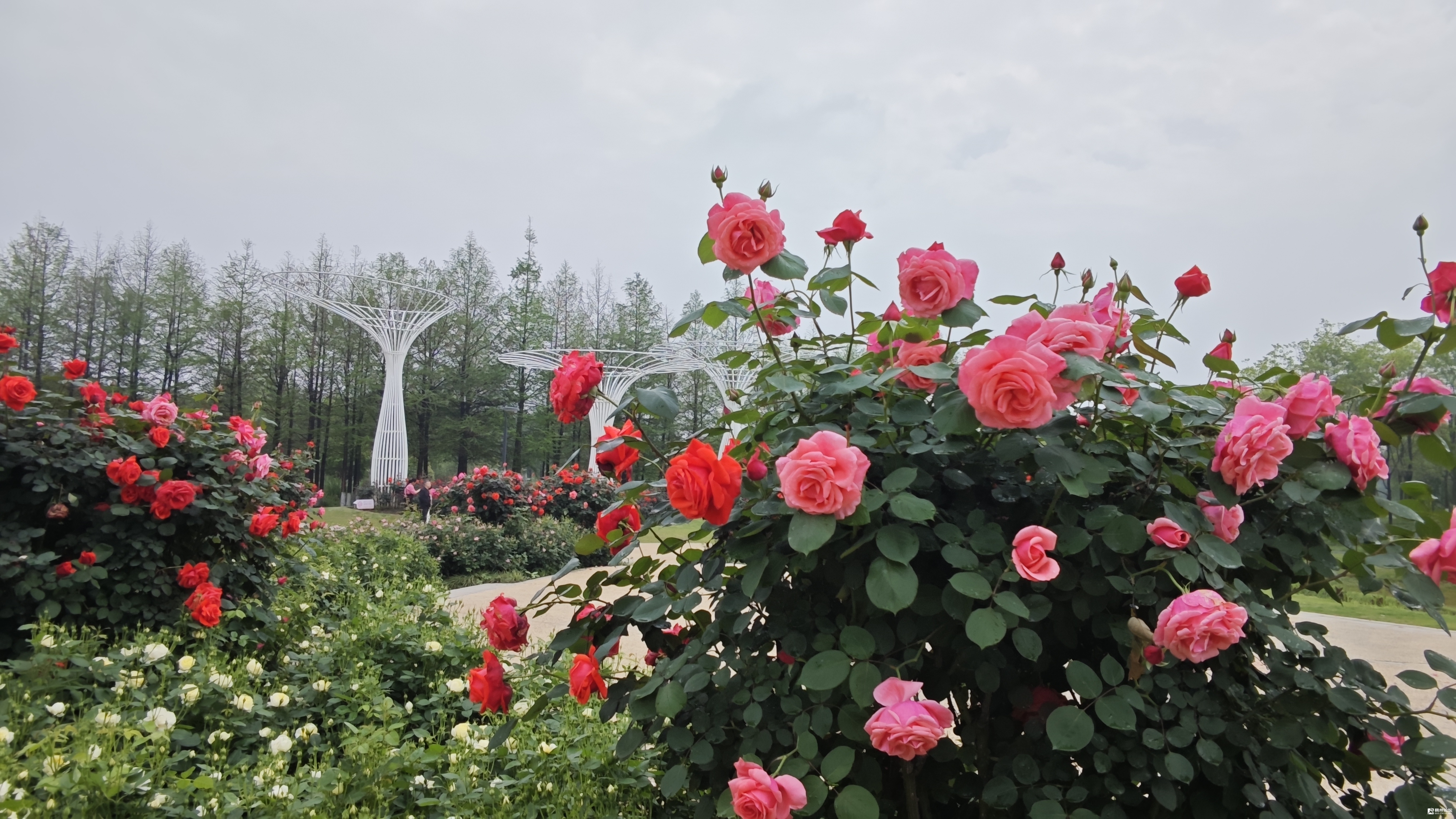 作为义乌唯一以月季为主题的公园,占地4万多平方米,定位为“国际芳香月季园”。园内种植近200个品种的月季,分为中轴舞台景观区、经典月季花海区和国际月季展示区。
