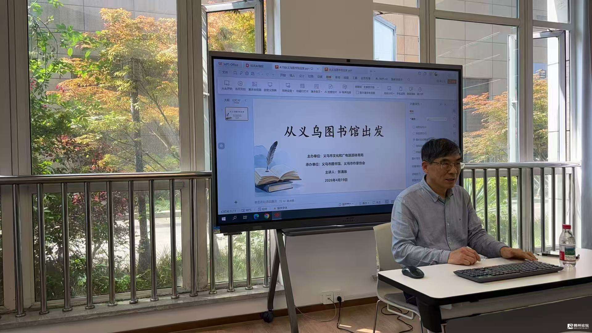 19日下午2点,“世界读书日”到来之际,由义乌市图书馆和义乌市作家协会承办的:《从义乌图书馆出发》专题讲座在市图书馆总馆一楼沙龙室举行。主讲人张涌泉教授,是义乌市廿三里街道泉塘村人,义乌图书馆的首任馆长。现为浙江大学文科资深教授,文科咨询委员会副主任,文学院学术委员会主任,浙江大学首批特级专家(院士级)。