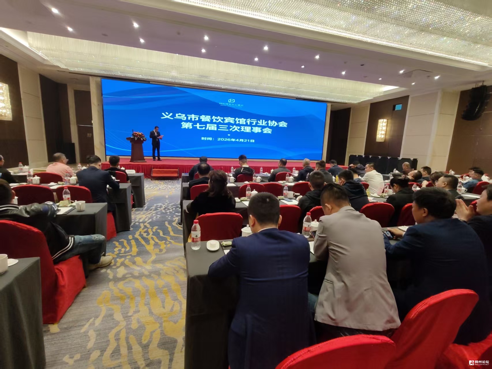 2026年4月21日,义乌市餐饮宾馆行业协会第七届三次理事会在国际博览中心酒店三楼华悦厅圆满举行。本次会议以总结过往、规划未来、表彰先进、凝聚共识为核心,来自协会理事会成员、会员单位代表齐聚一堂,共商义乌餐饮宾馆行业发展大计。