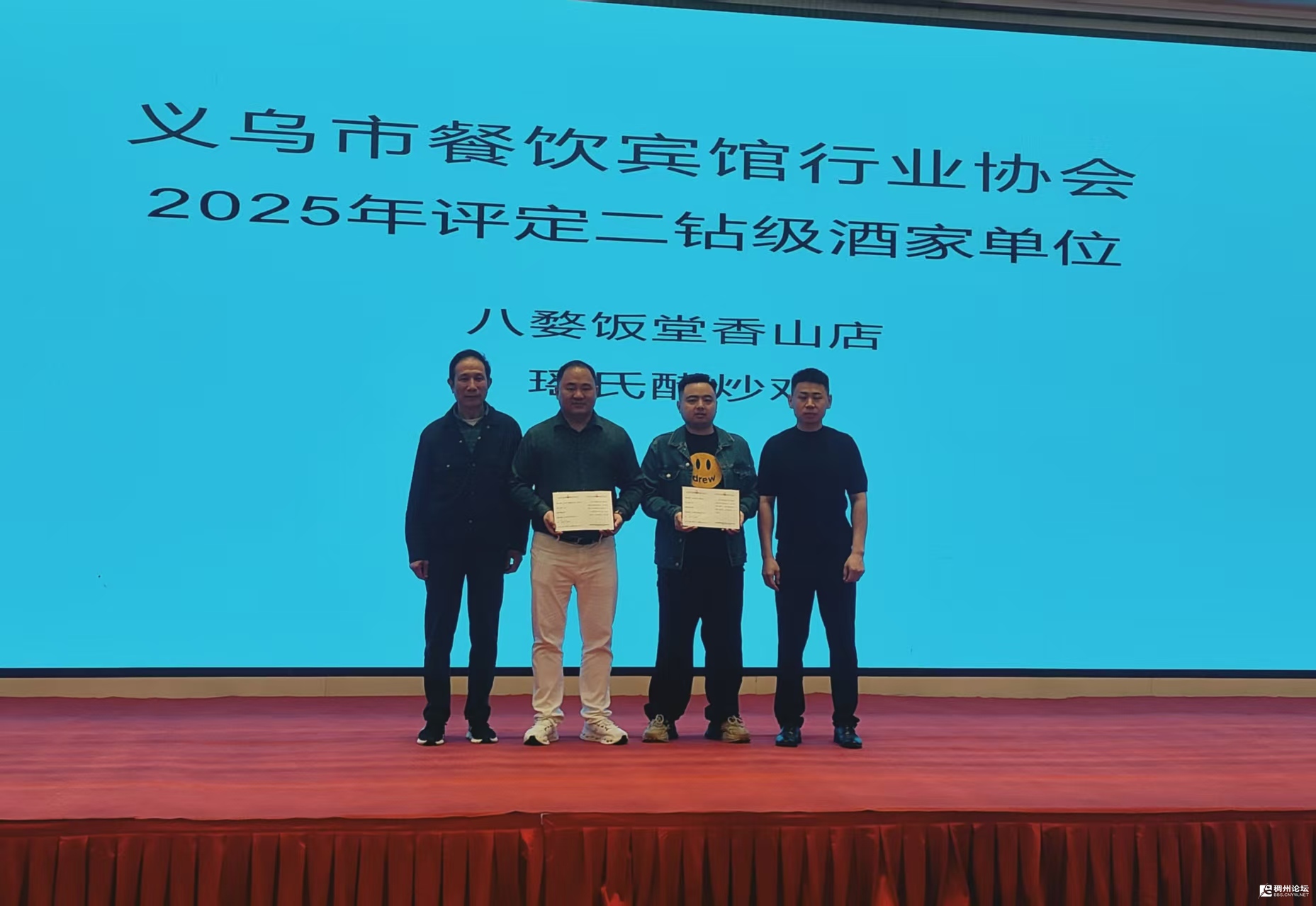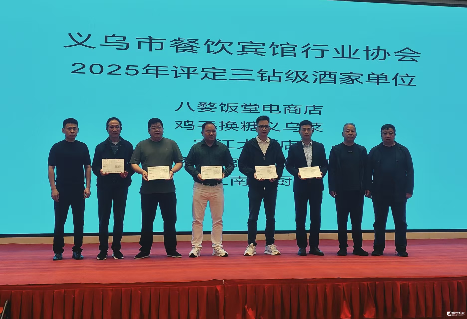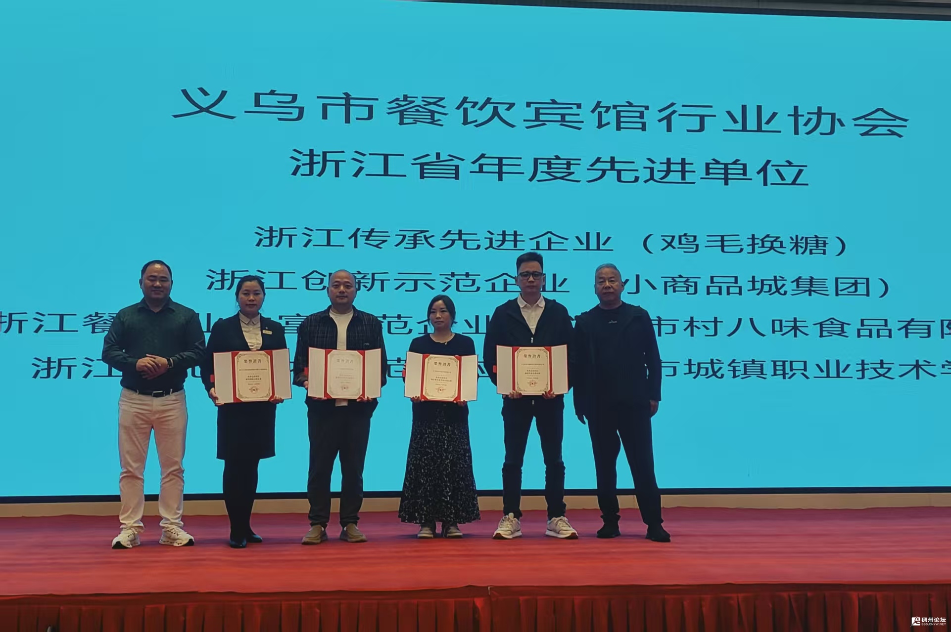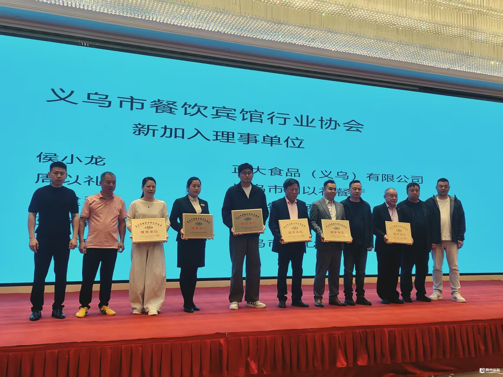 会议同步举行了授奖、授牌仪式。现场对年度先进单位和个人、钻级酒家单位进行授奖表彰,对新加入协会的副会长、理事单位进行授牌。其中,吴光明(义乌市双江时代百货有限公司)、谭继德(义乌动真格餐饮管理有限公司)当选副会长,侯小龙(正大食品(义乌)有限公司)、周以礼(义乌市周以礼餐厅)、江建勇(义乌银都酒店)、陆琬青(义乌市索地谷国际饭店)当选理事。新成员的加入,为协会注入了新鲜血液,也进一步壮大了行业发展合力。