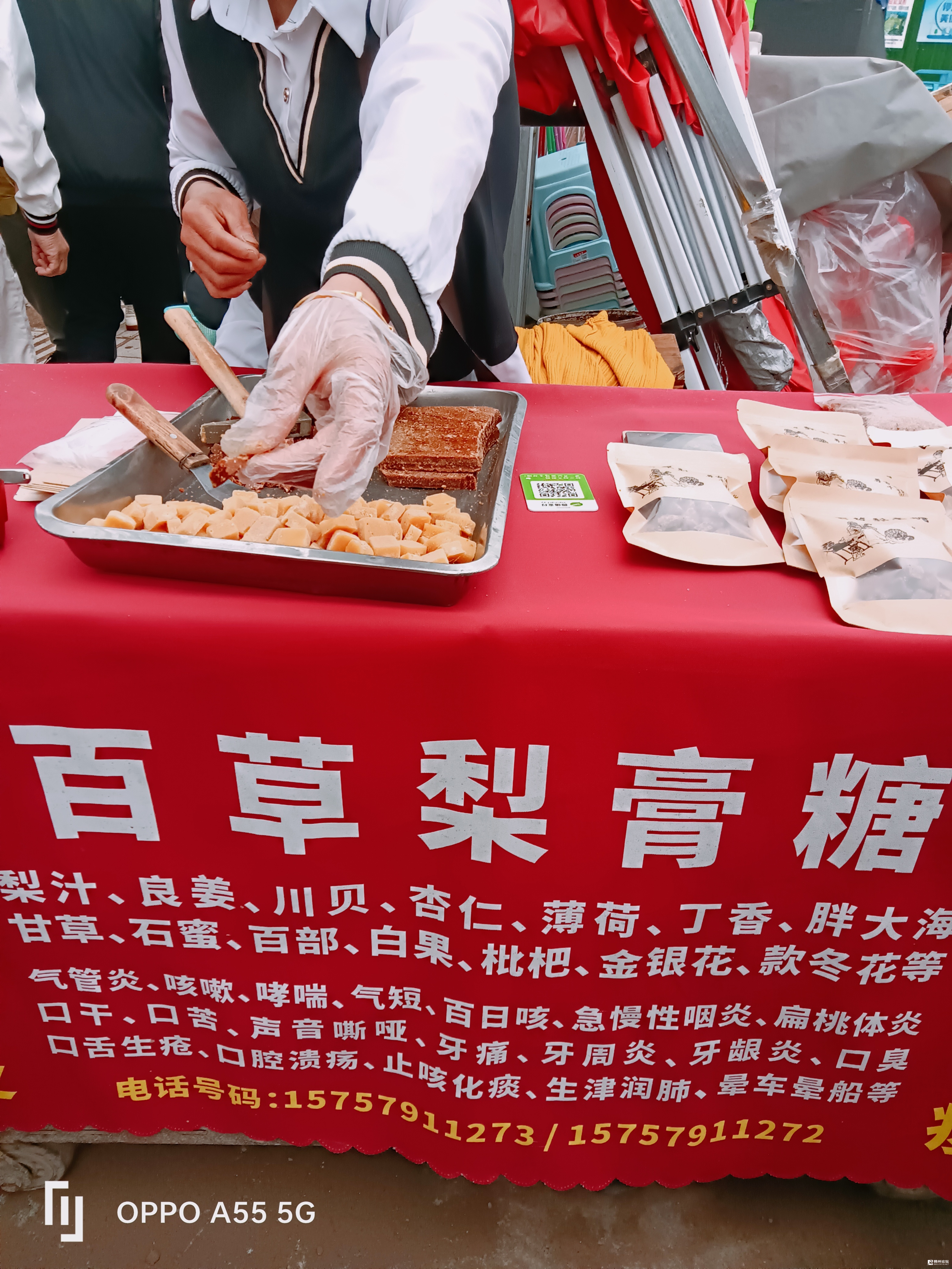 梨子捣碎,熬成厚汁,不加糖,装入瓶子应叫"梨膏"。以前佛堂大嘛俐贾好笑,边演出边售的梨膏糖,"砂糖质,小方块,草药香",是真正梨膏糖。大嘛俐边唱边说:"啊啦梨膏糖,止咳化痰,食也食不好,食也食不倒(死)"这是真话直说,就是说,梨膏糖只能暂时止咳,不能断根,对人也无害的。虽说是直话,但他所带梨膏糖,往往能销售一空。义乌乡间,把能说会道,口才好的人,戏说是卖梨膏糖世家,嘛俐的徒弟。……现乡集上卖的百草梨膏糖,是真正梨膏糖。