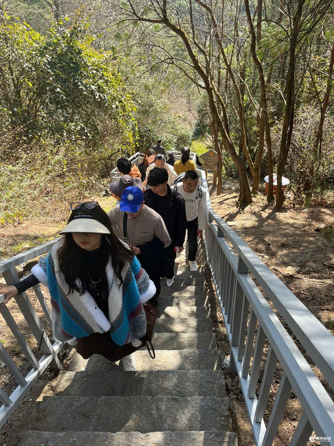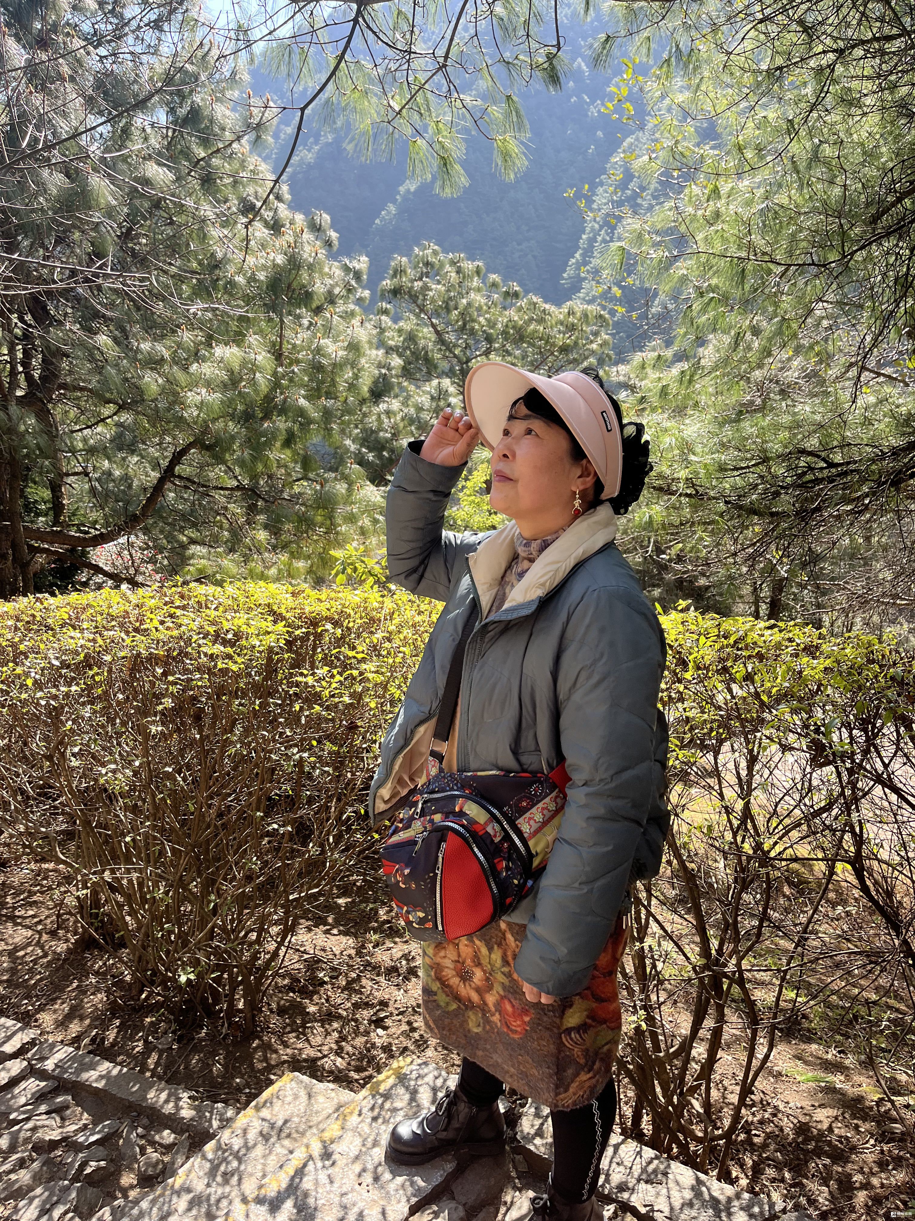 我与小蕾要到玉带路上去观赏美景,还要攀登四五百米高的山路,山路蜿蜒曲折,陡峭险峻。不过,现在沿途均做有宽敞的台阶,可一直送你到山顶玉带路。一路上,来来往往的人很多,我俩有说有笑,边走边拍照。春风吹拂,阳光明媚,天气不冷不热,感觉极其舒适愜意。在攀登台阶的过程中,虽然身上发热,满脸都是汗水,但心情却十分愉悦。一路上两人谈笑风生,边走边欣赏苍山美景,赏心悦目,不知不觉间便登上了玉带云游路。