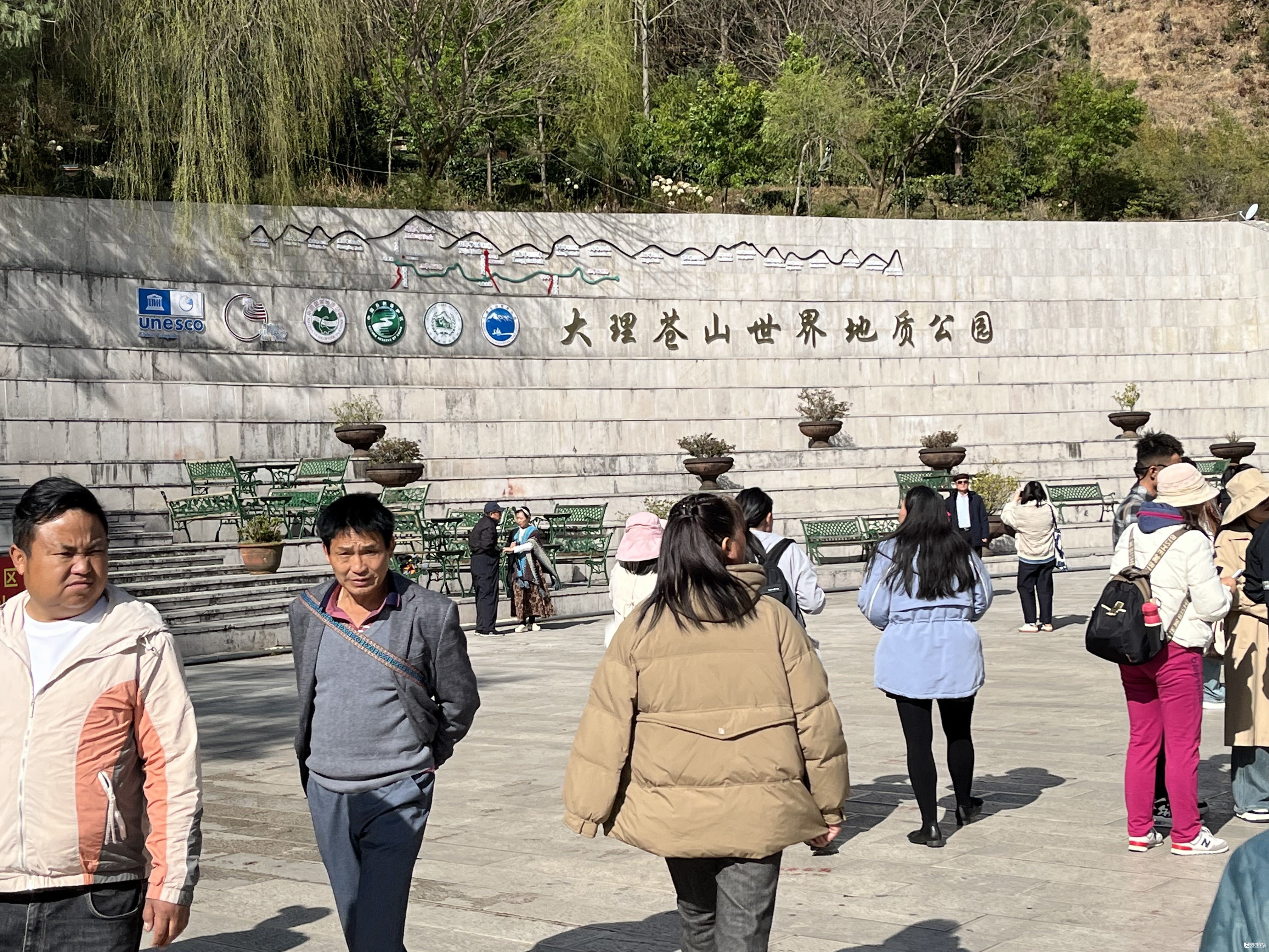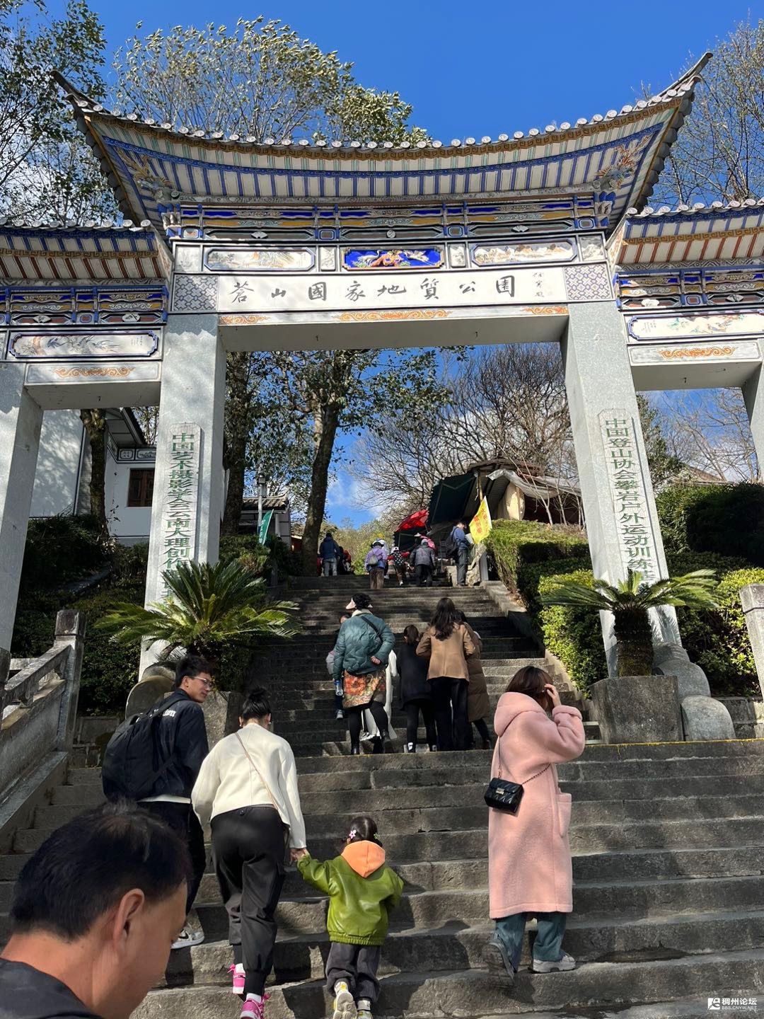 2024年2月29日上午十点半左右,我与小蕾随团走进了大理苍山国家地质公园的景区大门。这个景区大门是敞开式的外围大门,不设防的,驴友们可畅通无阻的直进直出。大门建筑巍峨壮观,华丽典雅,左右石柱上写有两块牌子,左手是:中国艺术摄影学会云南大理创作基地;右手是:中国登山协会攀岩户外运动训练基地。这说明苍山国家地质公园对摄影与登山运动是极其重视的,并有独特的建树。有摄影图片与登高望远图可佐证。