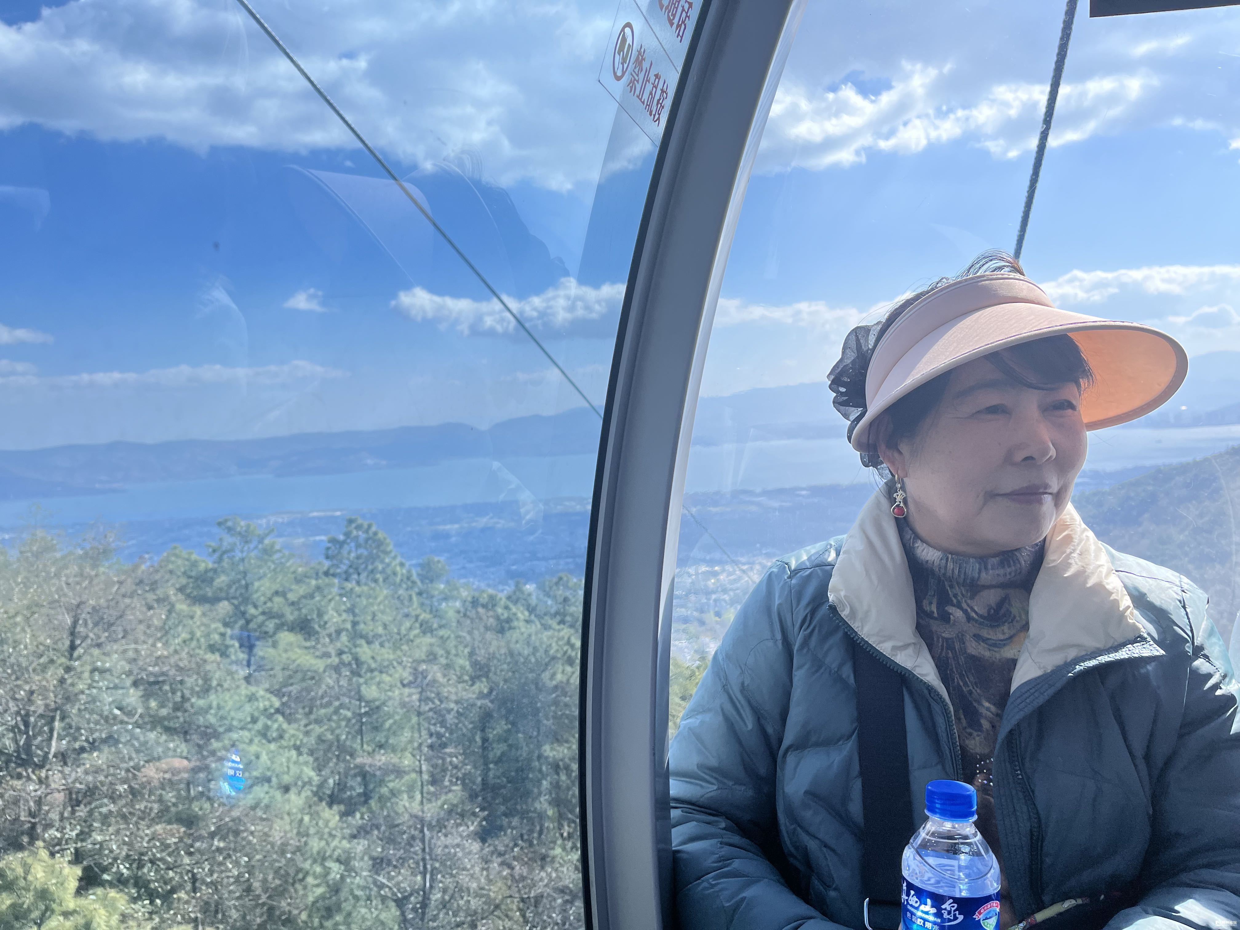 导游在苍山感通索道买好票后,组织大家进入缆车站坐缆车,缆车站海拔2260米,我们坐上缆车向大山高处进发。洱海、大理、大峡谷、成片成片的海洋般的绿色大森林,被快速地甩在了身后,景色超绝的美,心情格外兴奋和愉悦。