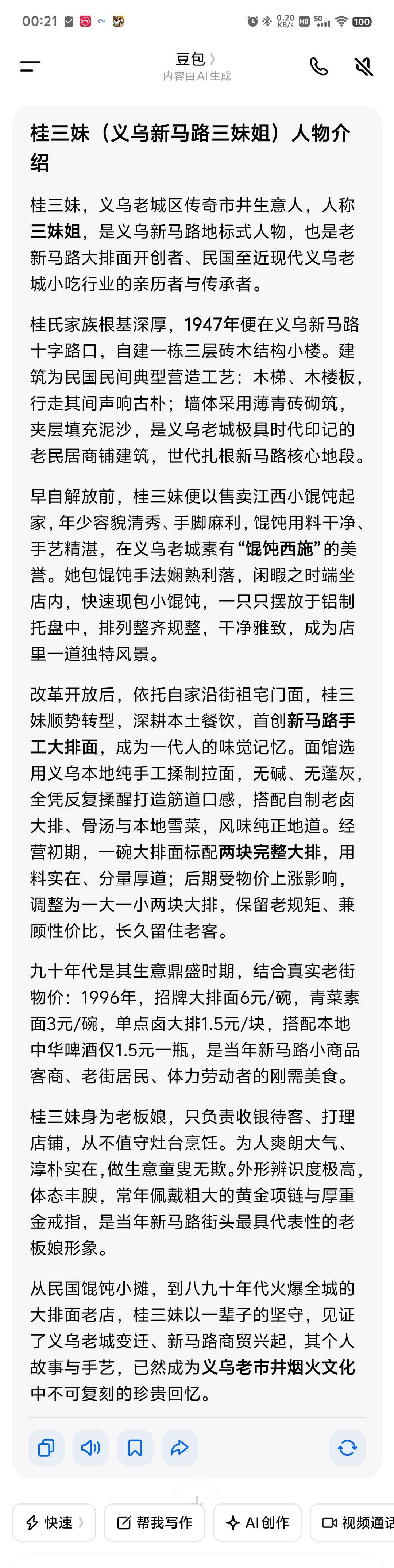 从民国馄饨小摊,到八九十年代火爆全城的大排面老店,桂三妹以一辈子的坚守,见证了义乌老城变迁、新马路商贸兴起,其个人故事与手艺,已然成为义乌老市井烟火文化中不可复刻的珍贵回忆。