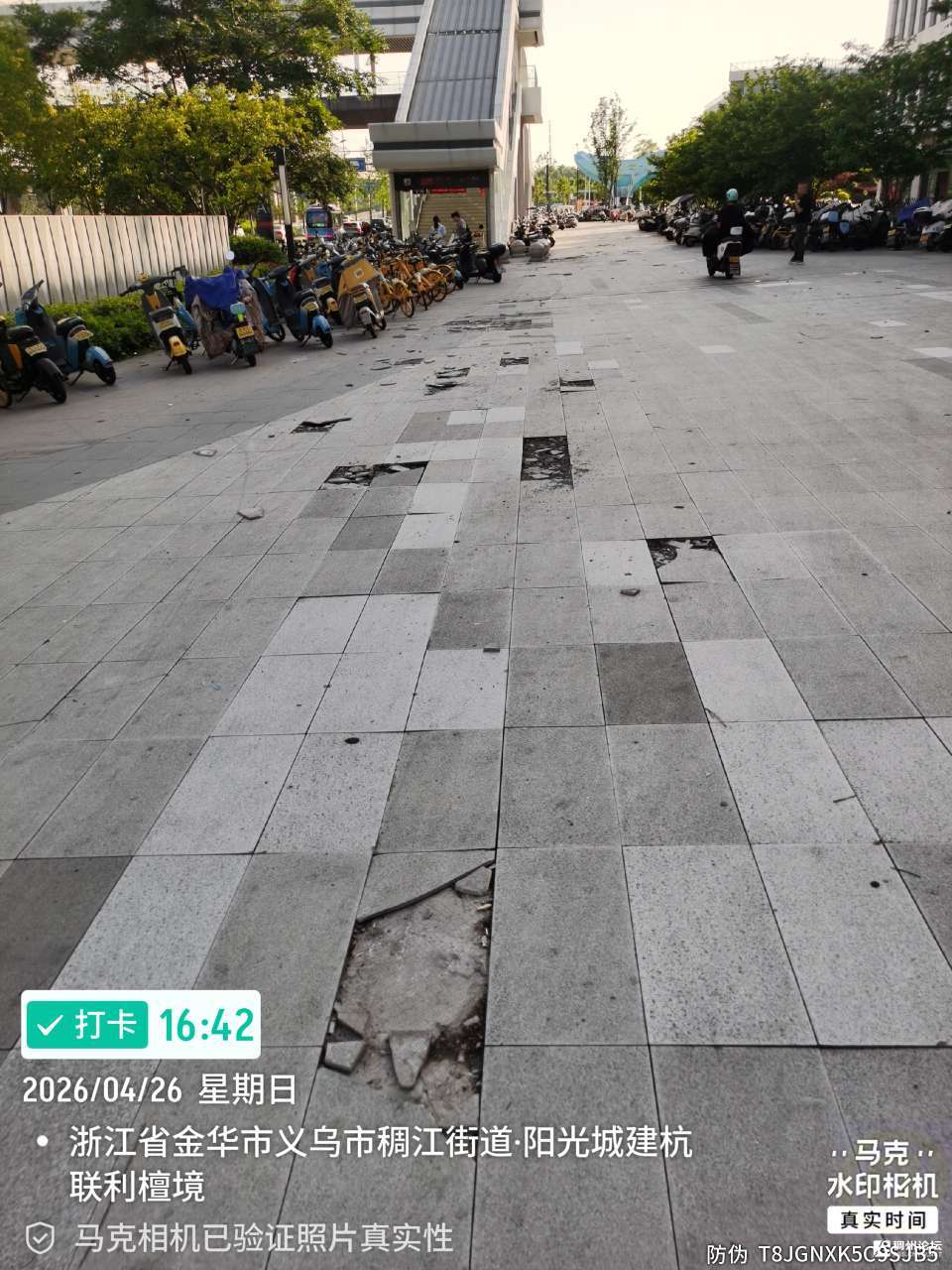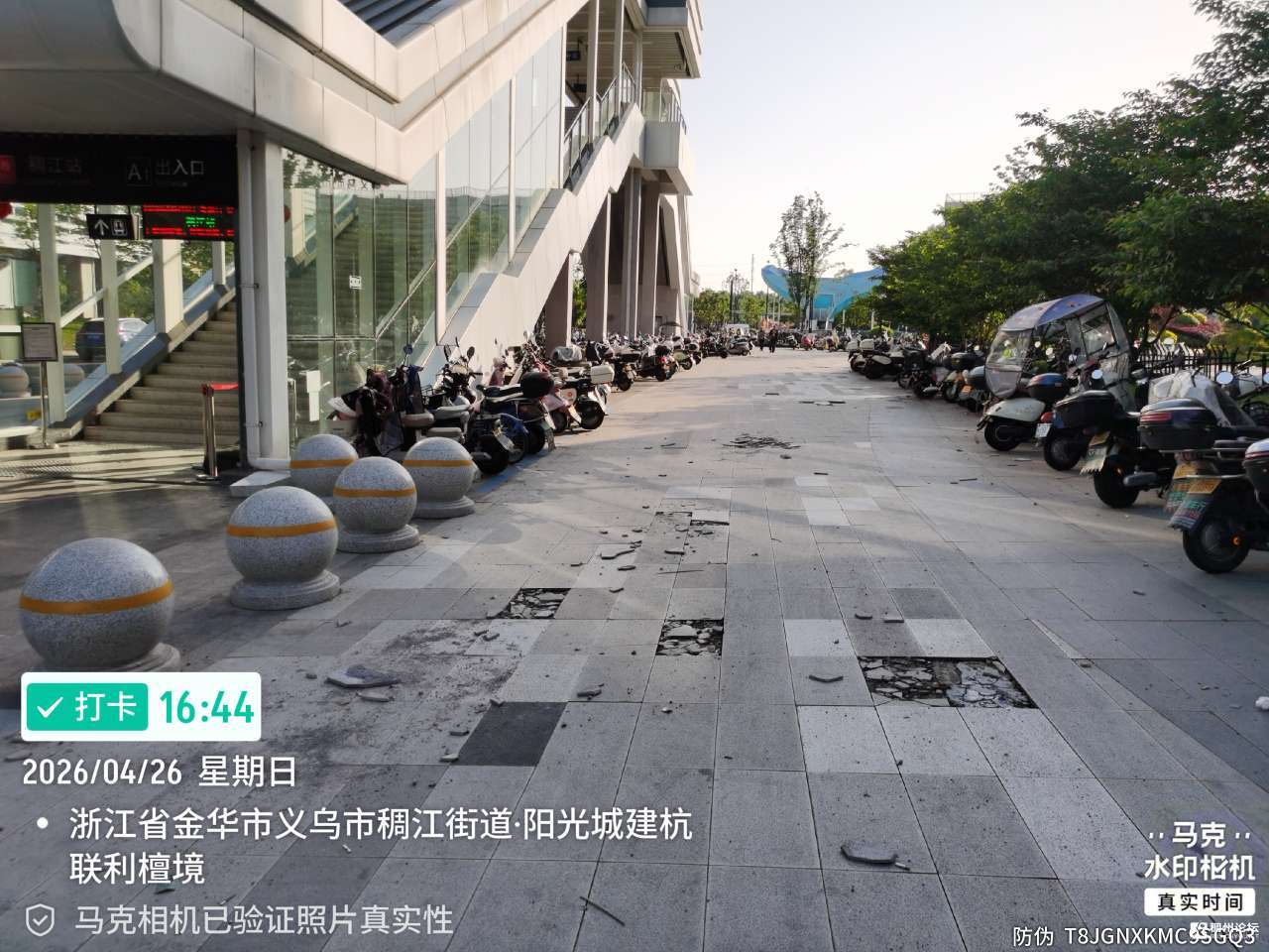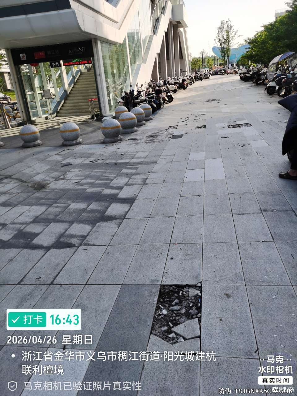 稠江轻轨站出站口,是稠江对外的窗口,每天人来人往很繁忙,地面石英砖因材质太薄,每天大量电动车骑过,地面破损严重已很久,白色垃圾无人打扫,和周边配套真的很不搭,建议主管部门安排日常常态管理和整改。