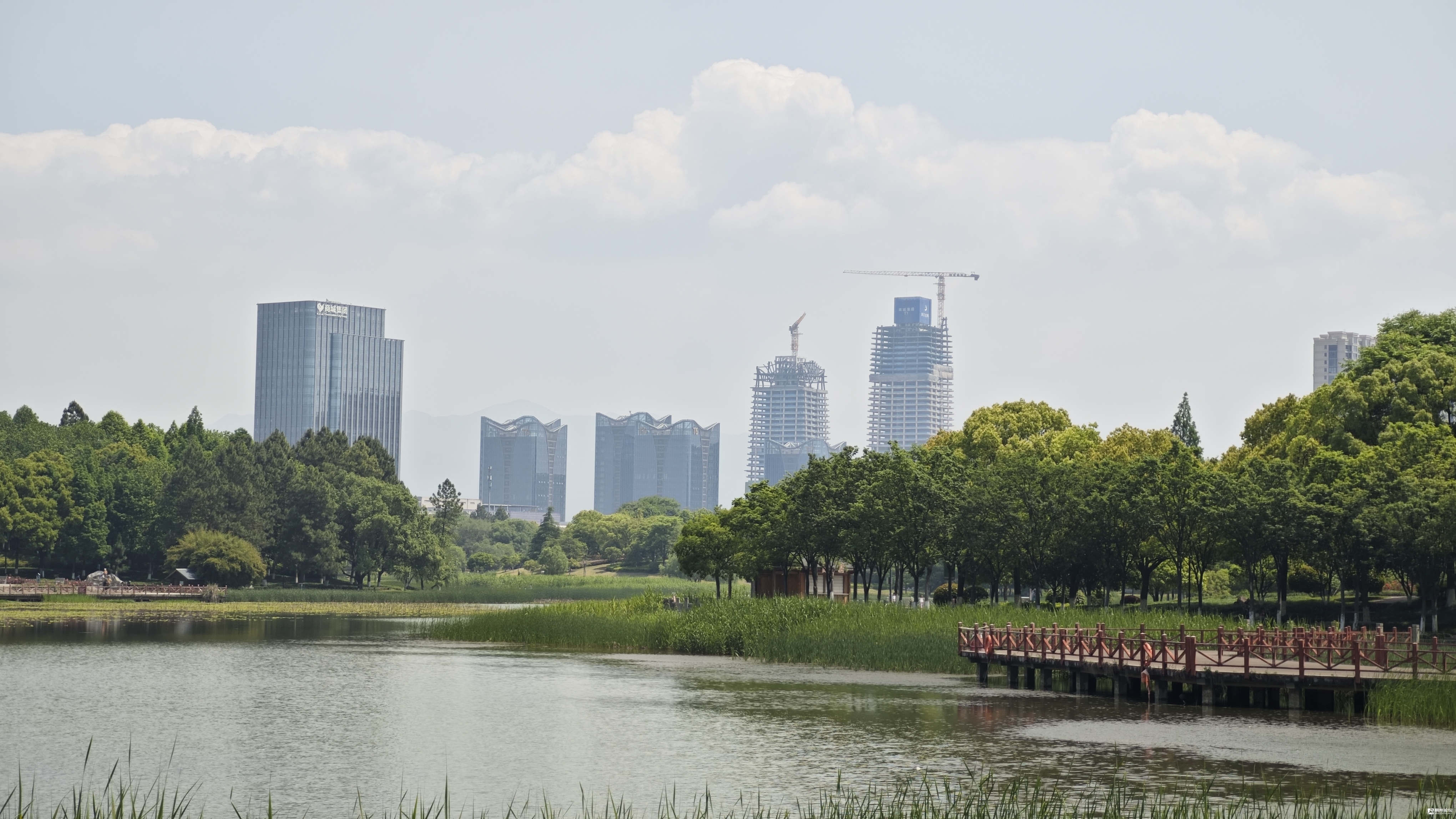 暮春的福田湿地公园,水波粼粼,绿意盎然,艺术点缀其间,文化流淌其中。不远处在建的全球数贸中心的双塔大楼,和郁郁葱葱的绿树,遥相呼应,相映成趣。它不仅是城市中的一片“圣洁净土”,更是市民共享的“城市客厅”,邀请人们在繁忙之余,于此驻足,感受自然馈赠的宁静与美好。
