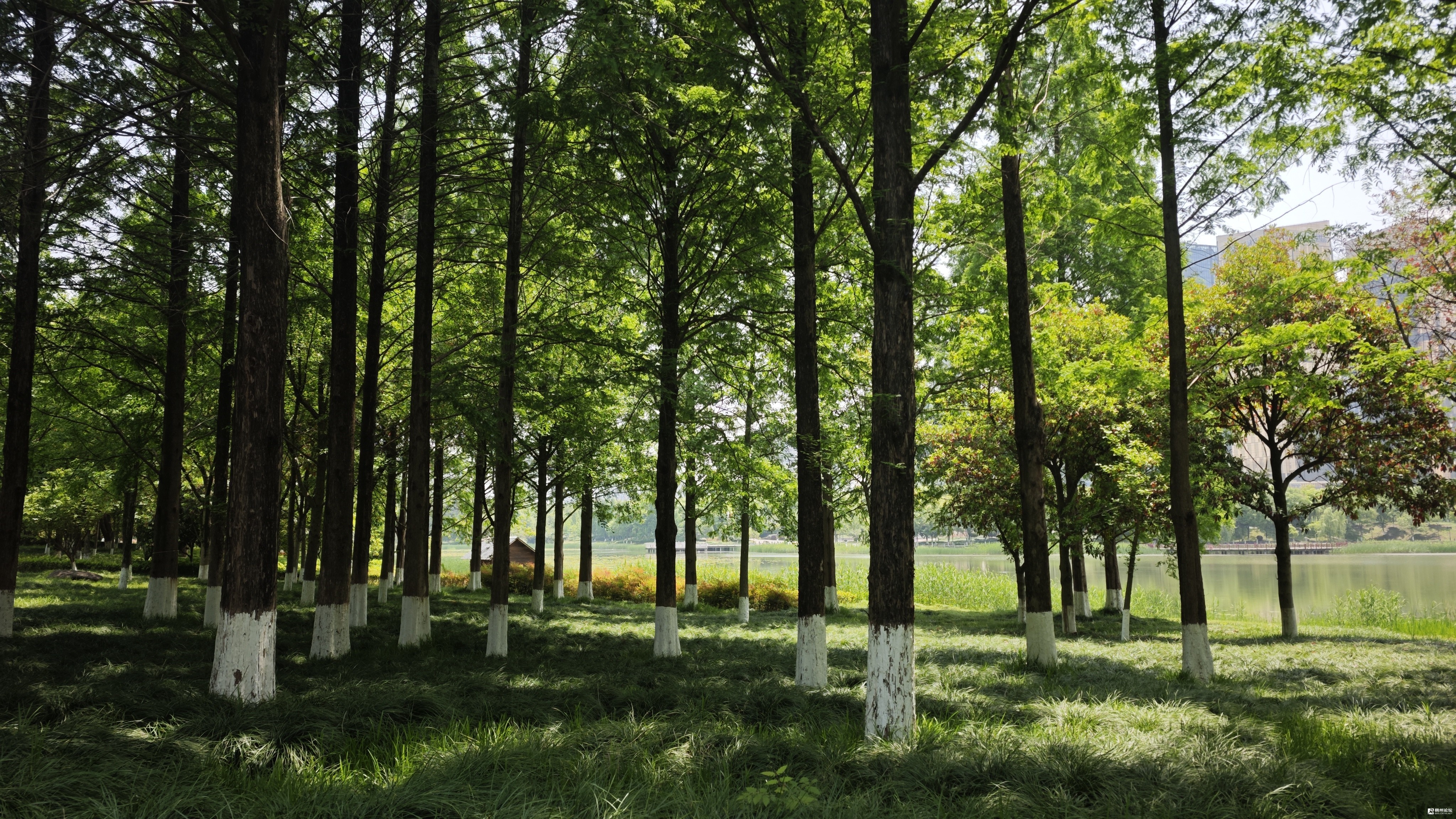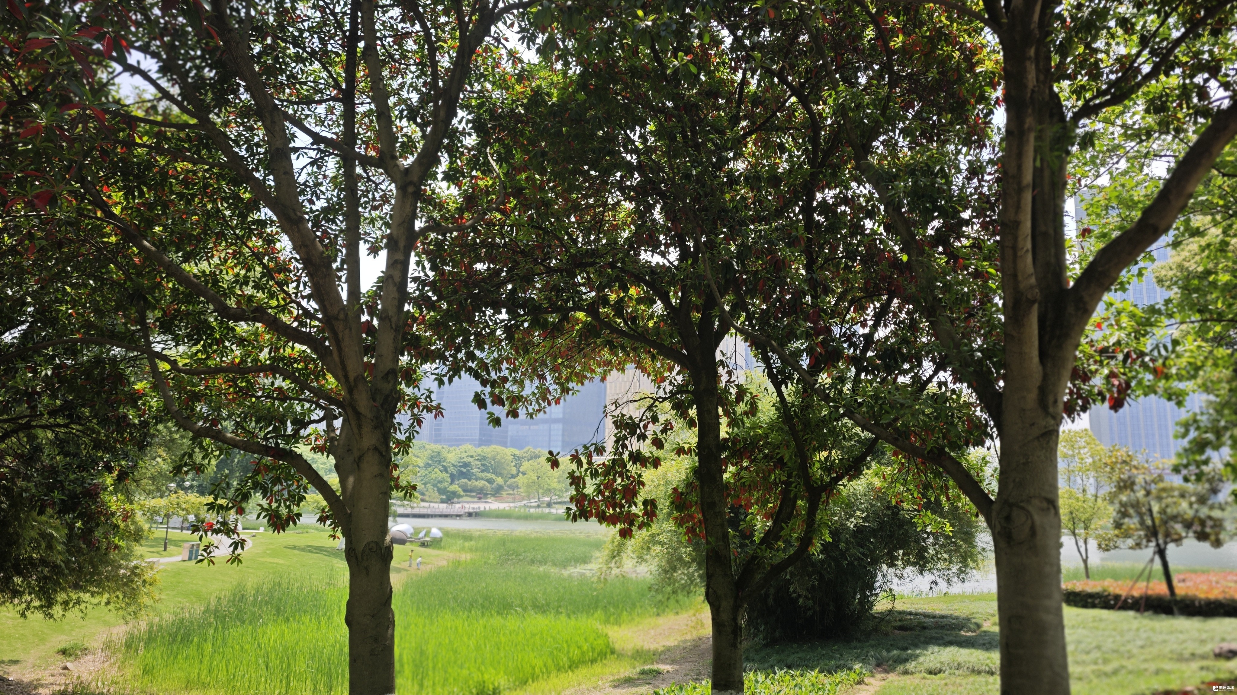 近期,公园内的水杉、枫树、杨柳等树木,以其青翠欲滴的嫩芽枝叶,成为市民春日打卡的新亮点,为这片湿地增添了清新雅致的色彩。